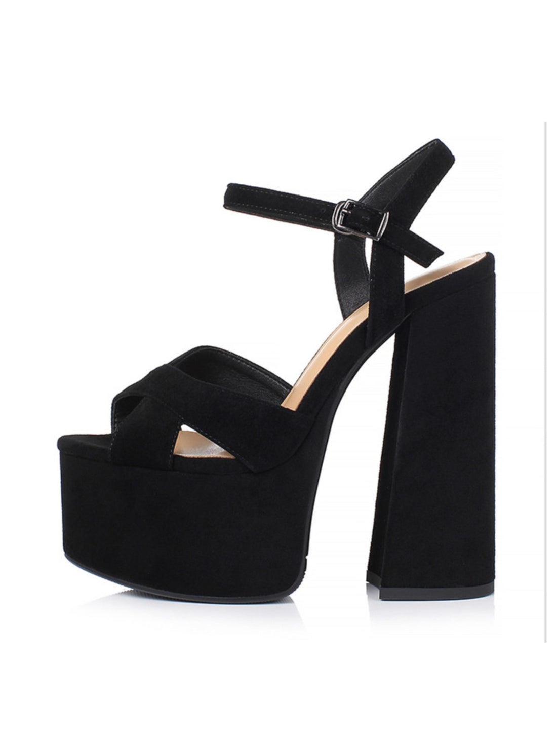 Style: Platform Block Heel Sandals Material: Vegan Suede Closure Type: Strap & Buckle Heel...