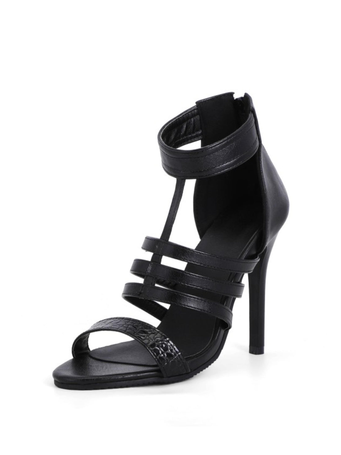 Style: Strappy Stiletto Heel Sandals Material: Faux Leather Closure Type: Back Zipper Heel Type:...