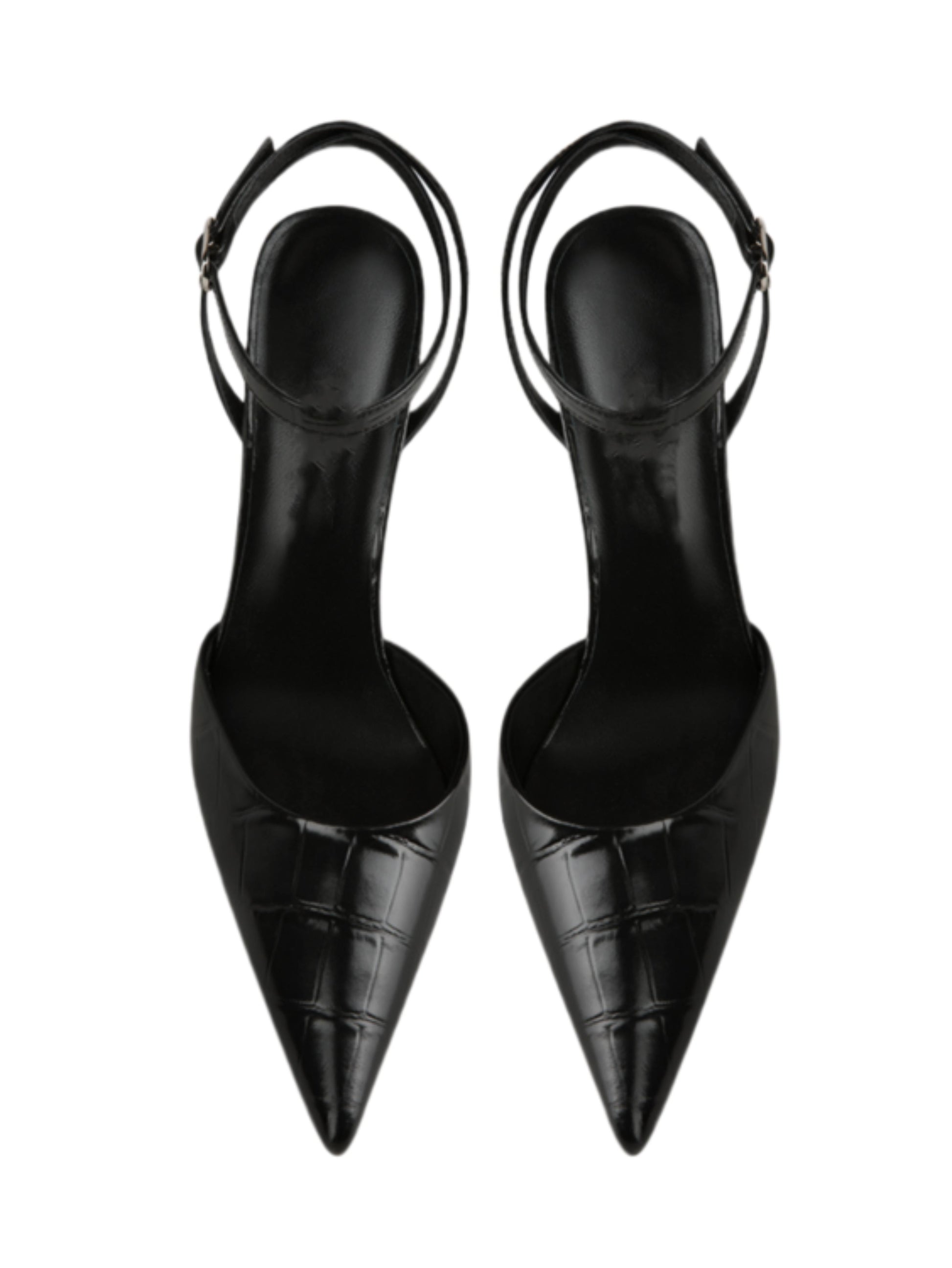 - Sandal Features: Elegant ankle strap, slim stiletto heel, and pointed-toe design