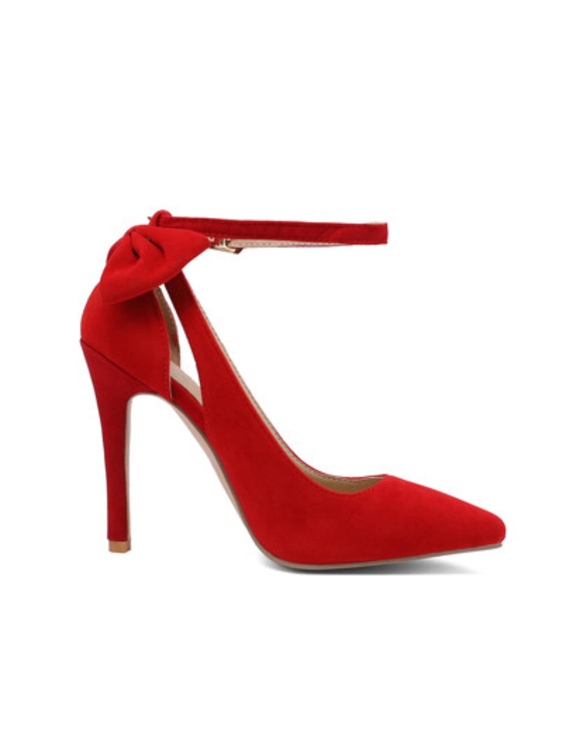 - Sandal Features: Feminine bow detail on the ankle, cut-out side design for added elegance, sophisticated silhouette perfect for formal wear, and adjustable ankle strap for secure fit
