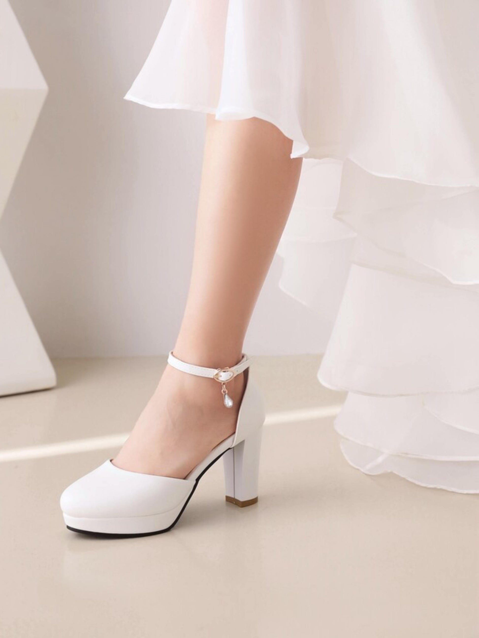 Closed Toe Platform White Sandals for Women with Single Ankle Strap