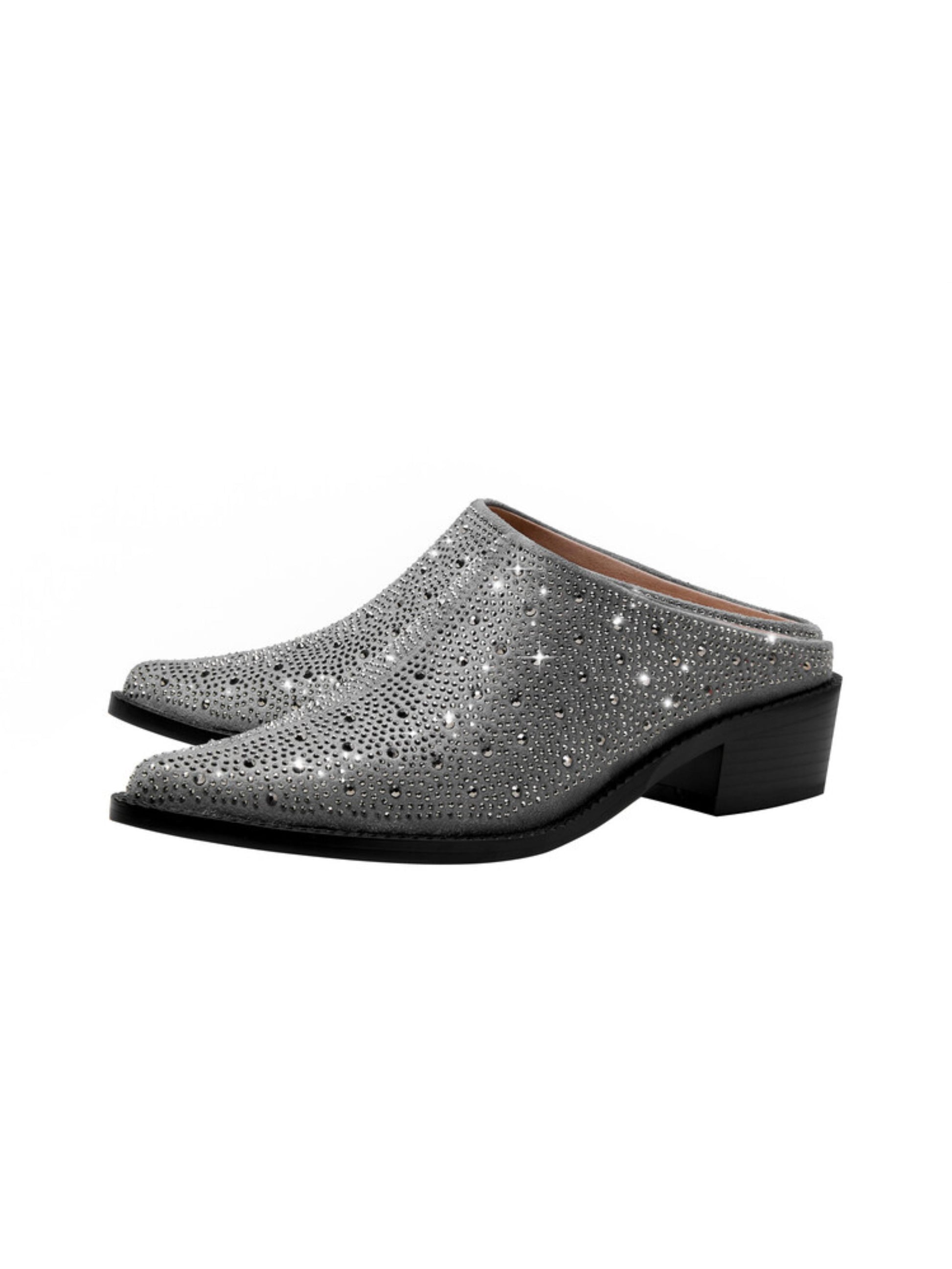 - Sandal Features: Eye-catching all-over rhinestone embellishments, easy slip-on design, sturdy low block heel for stability and comfort