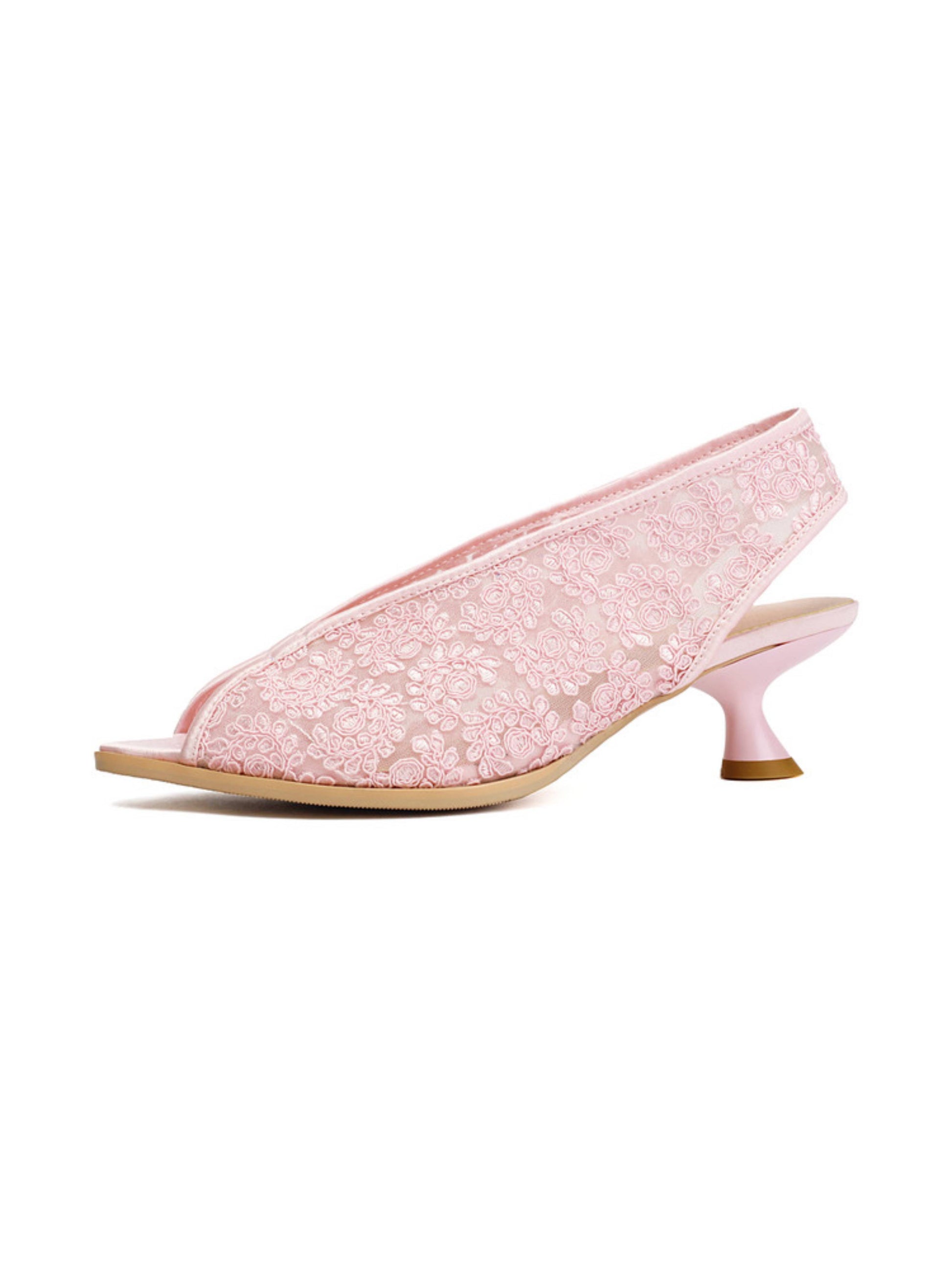 Delicate Floral Lace Detailing Soft Pink Sandals for Women