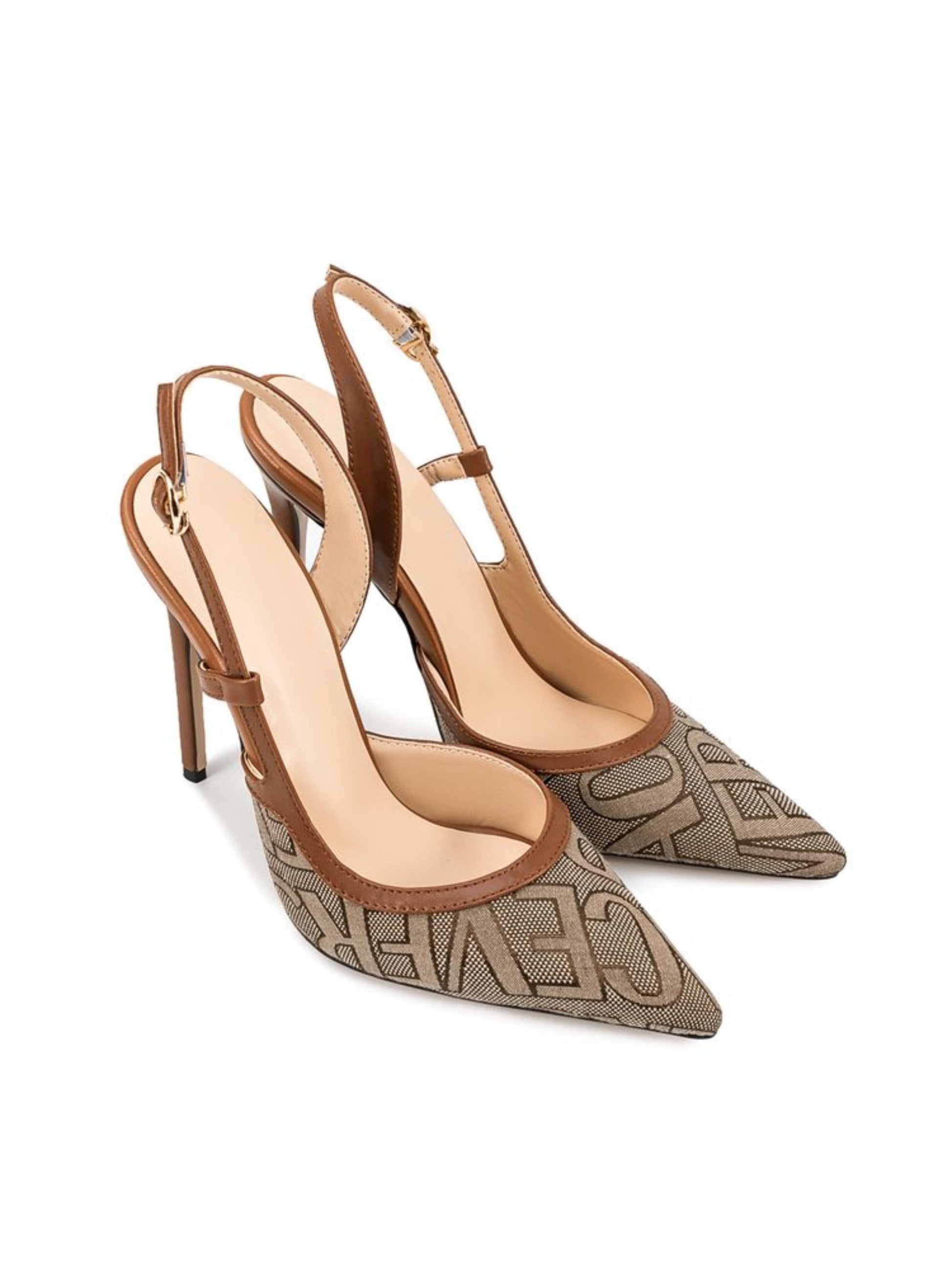 - Sandal Features: Elegant monogram-printed fabric, slingback design for added support, and sleek pointed toe