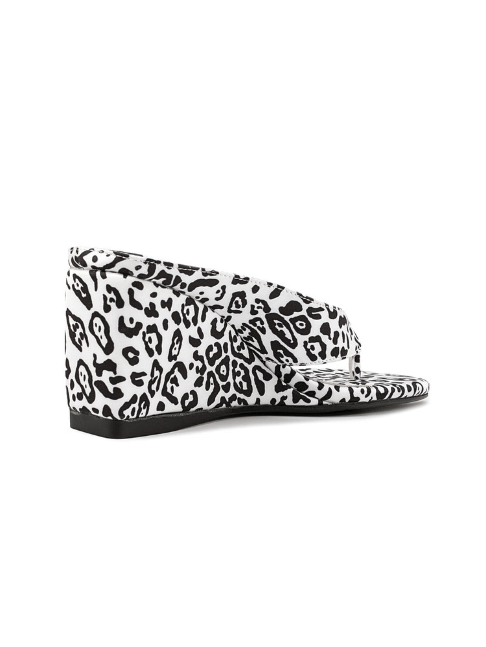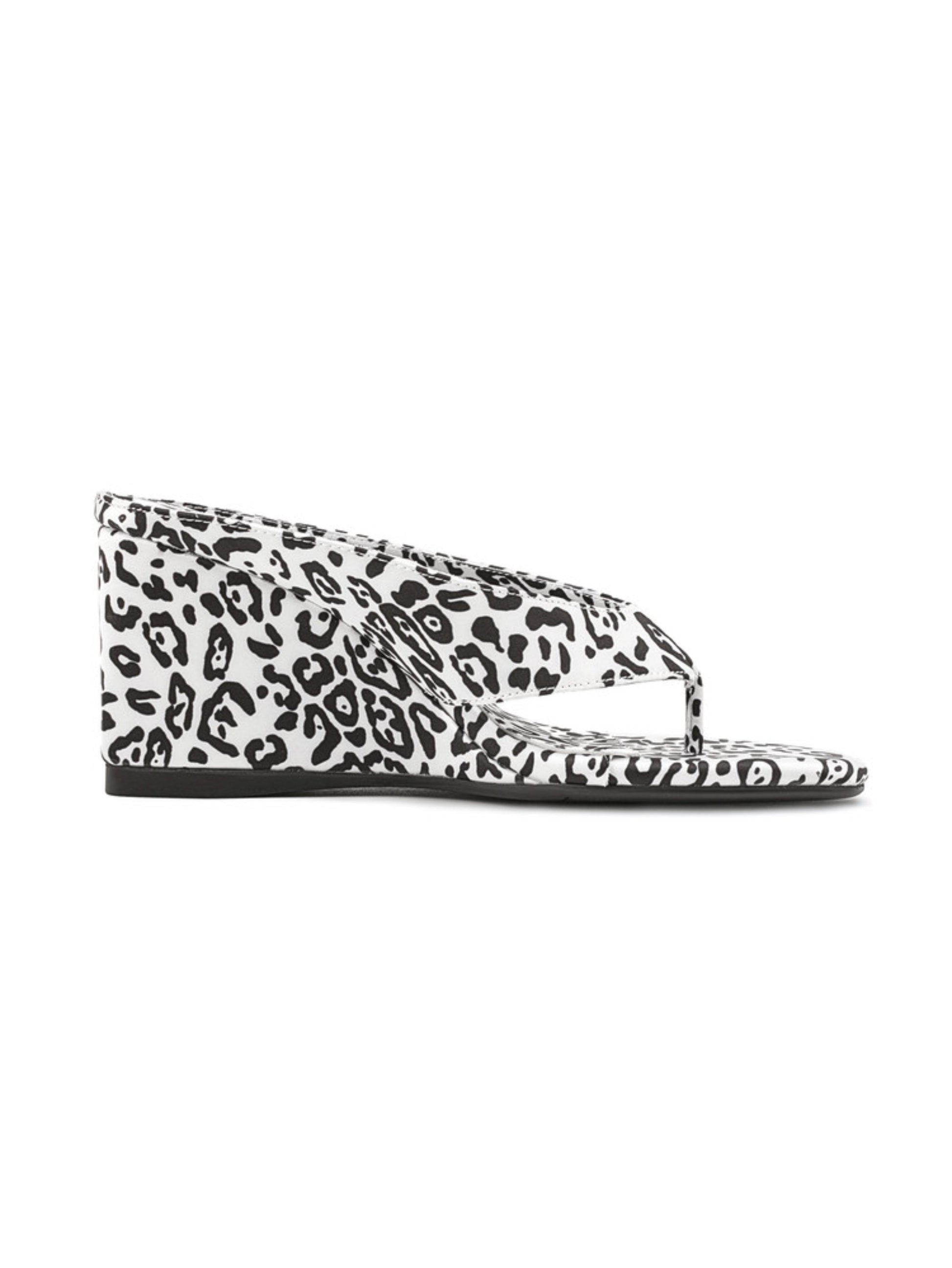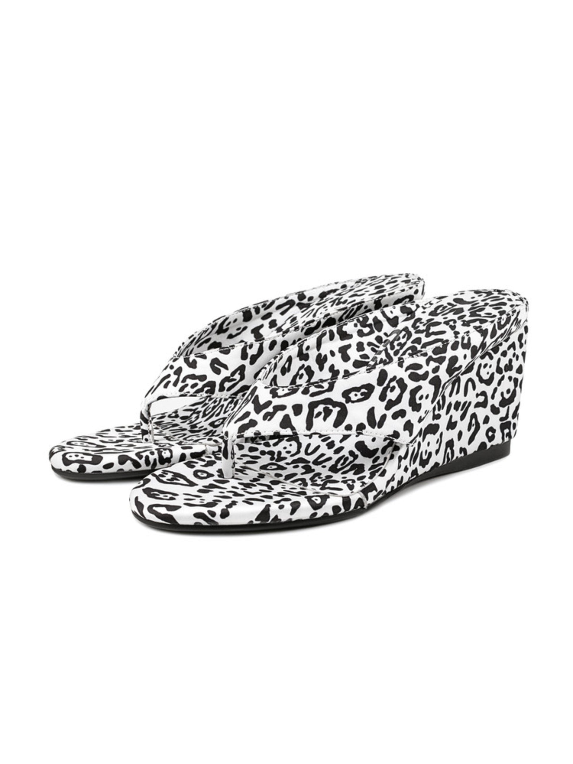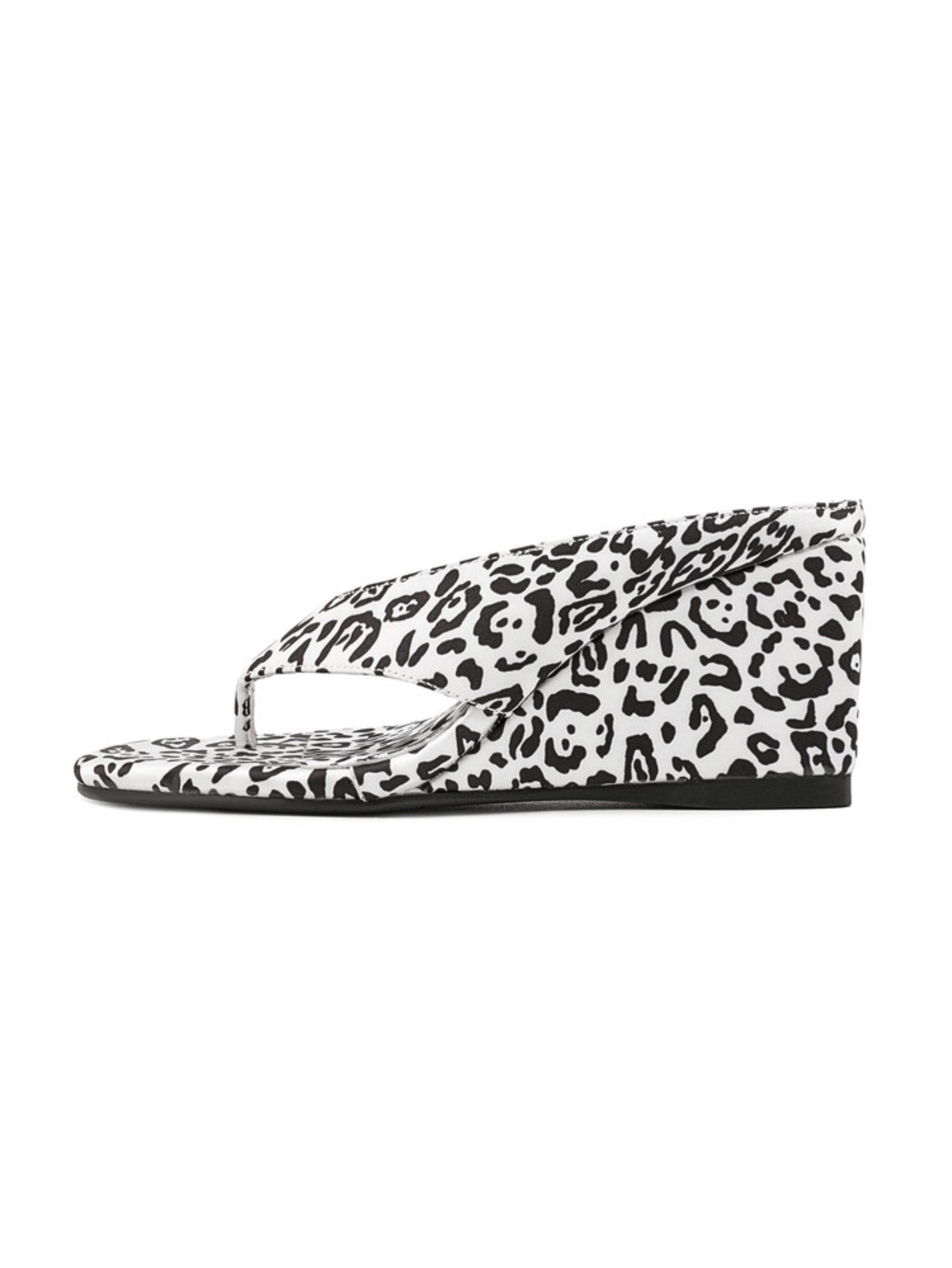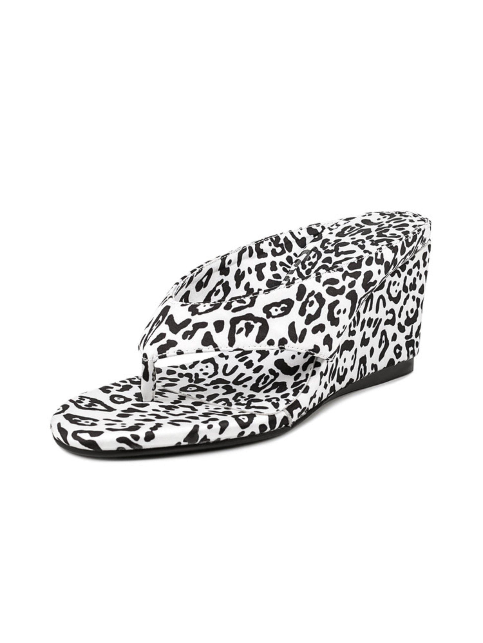 - Sandal Features: Bold animal print wedge, comfortable wedge heel, and easy slip-on design
