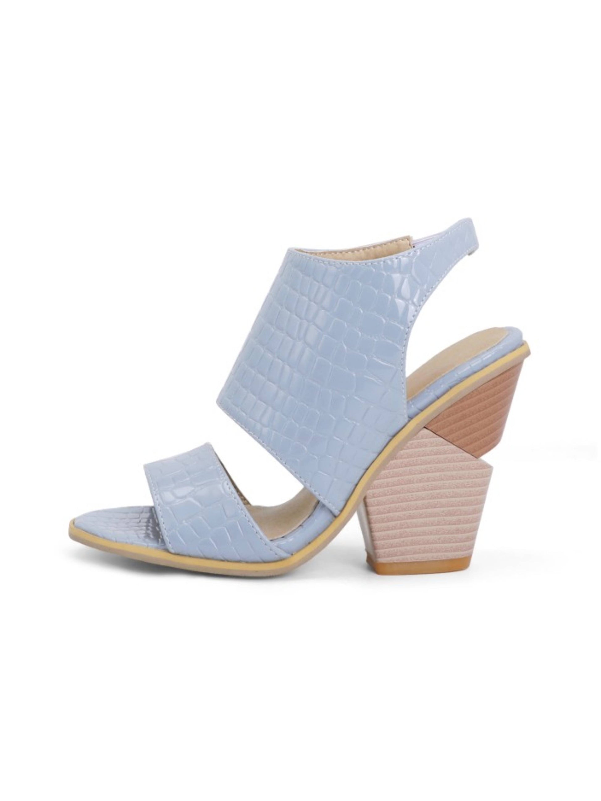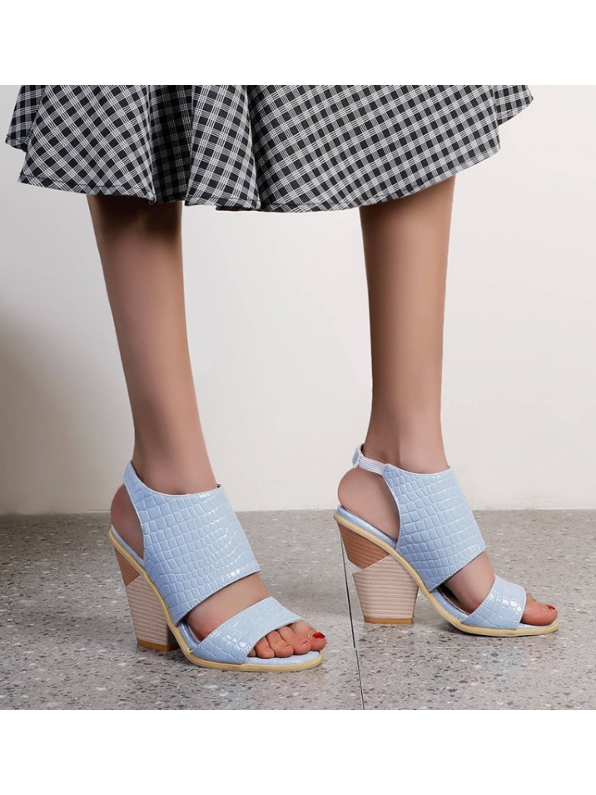 Fashionable Light Blue Crocodile Pattern Block Heel Women‘s Sandals