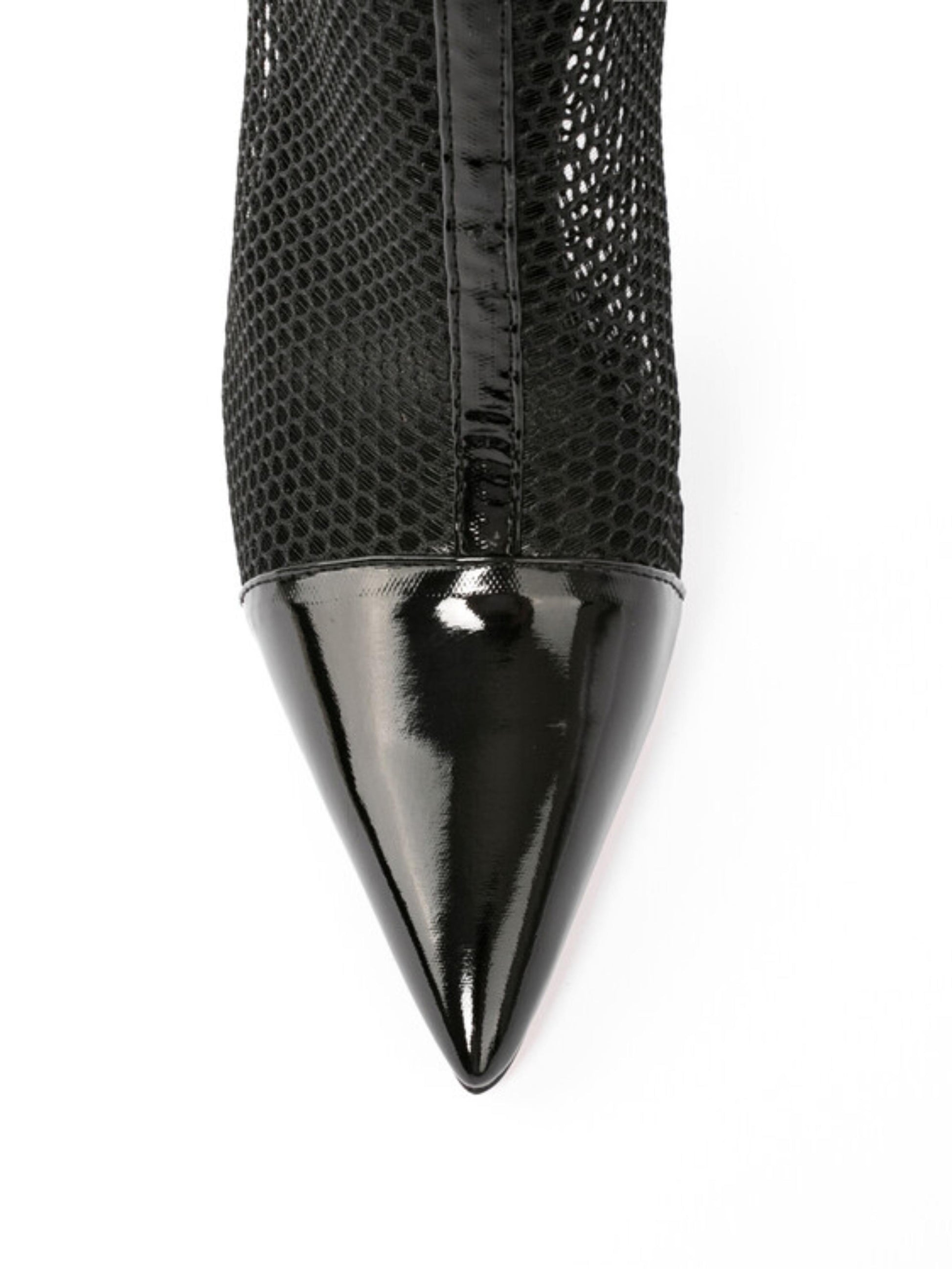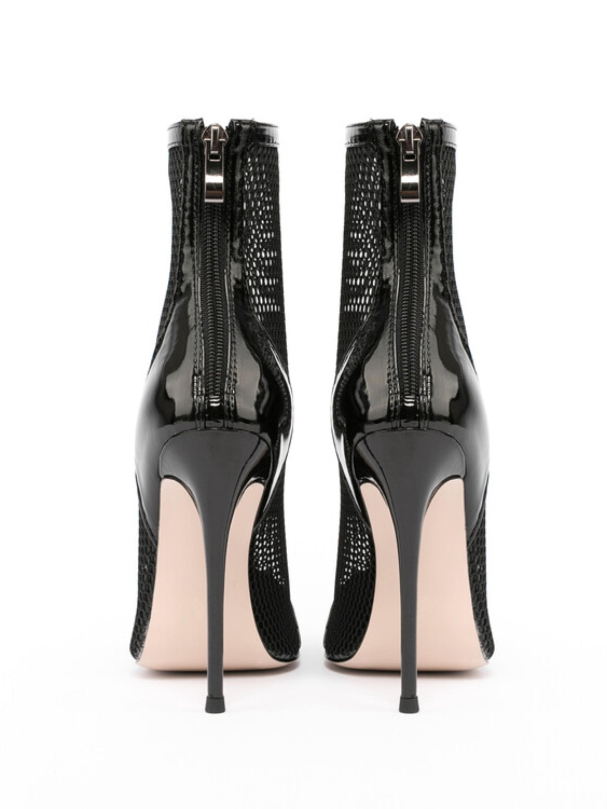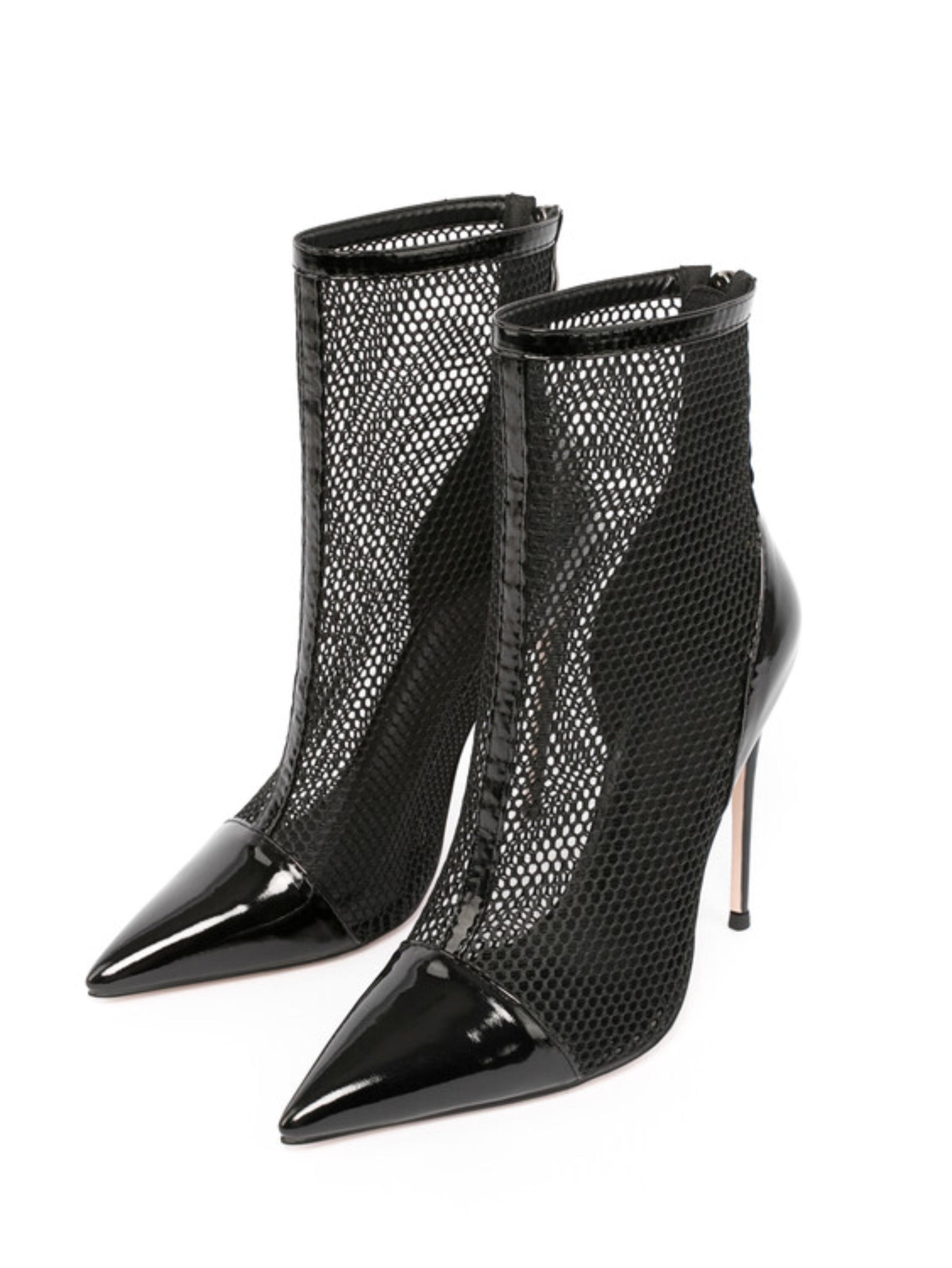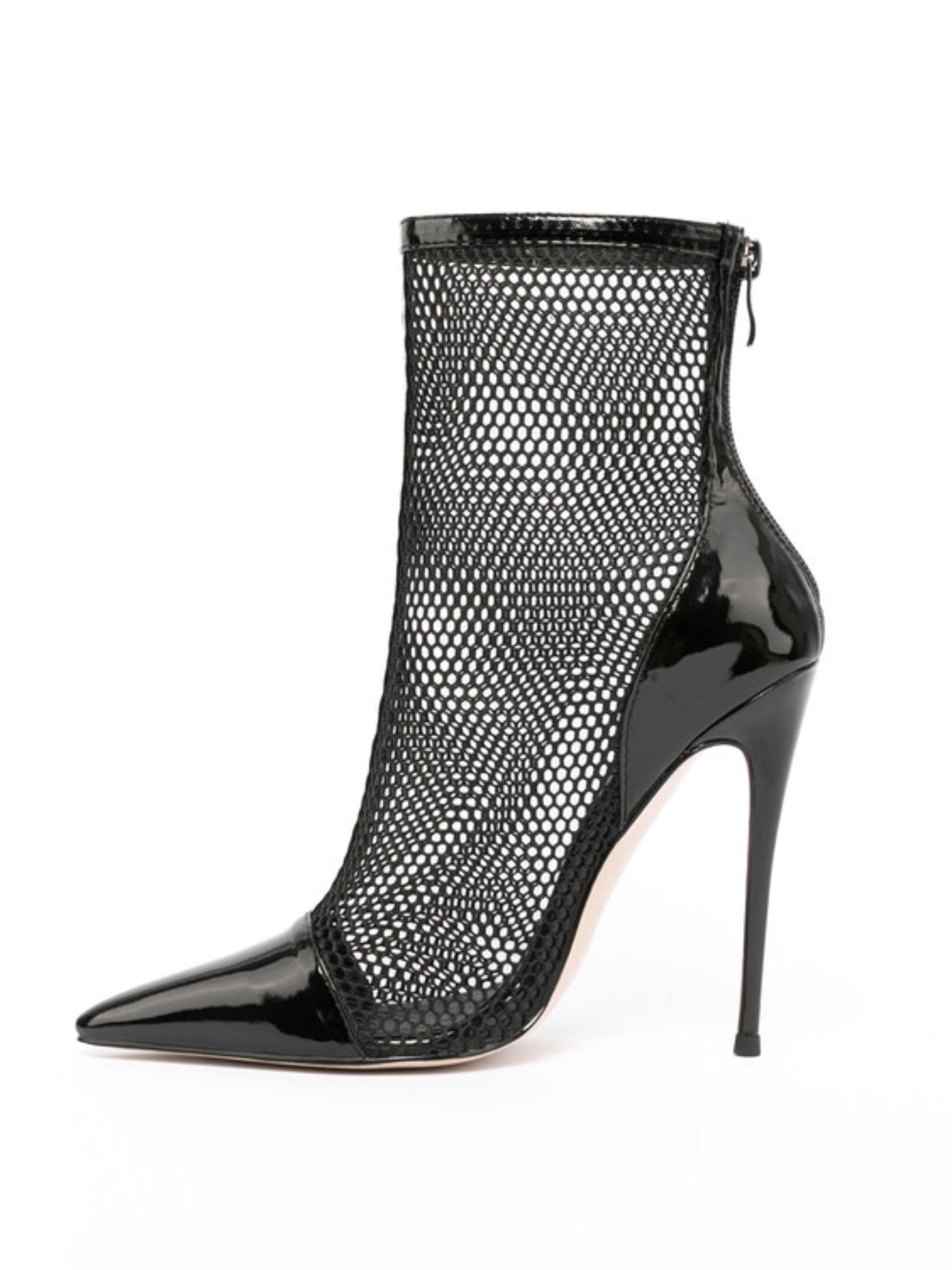 Fishnet & Patent Leather Ankle Bootie Heels Sandals for Women Black