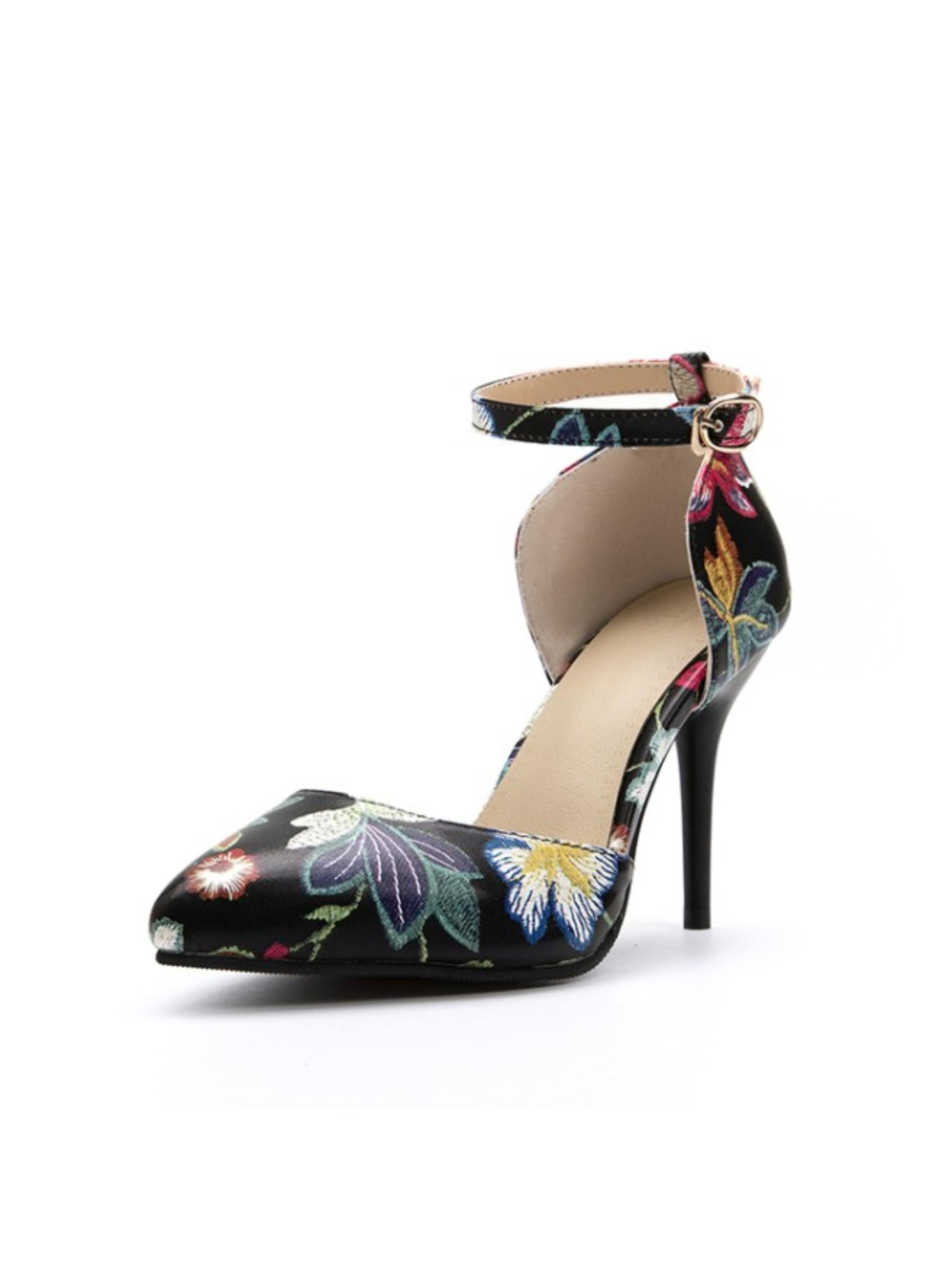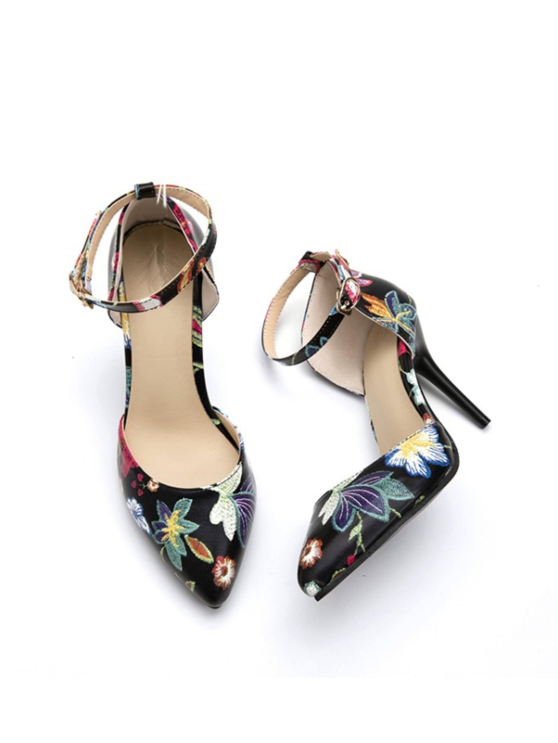 Floral Ankle-Strap Stiletto Heel Women Sandals