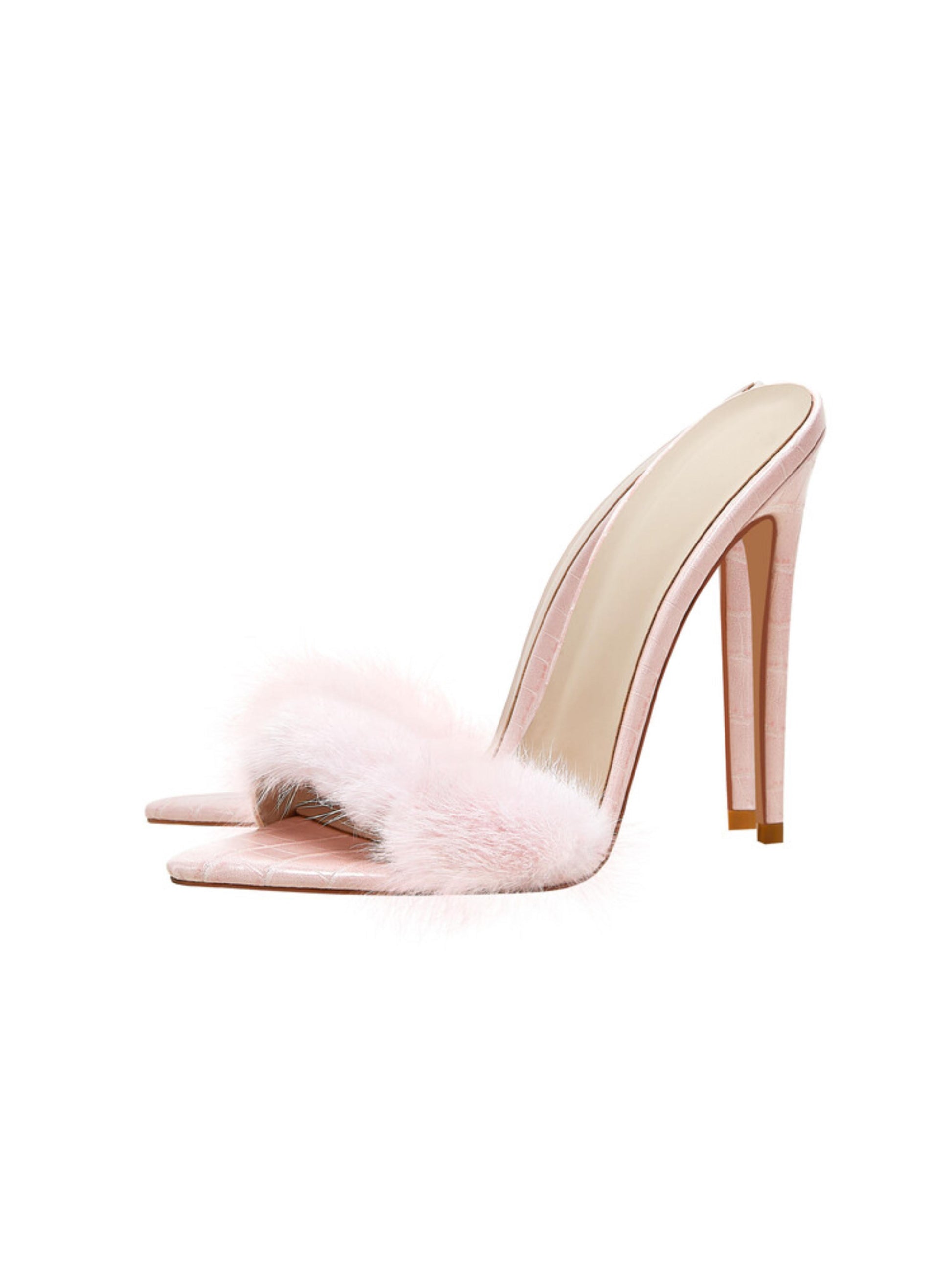 Glam Fluffy Slip-On High Heel Sandals for Women