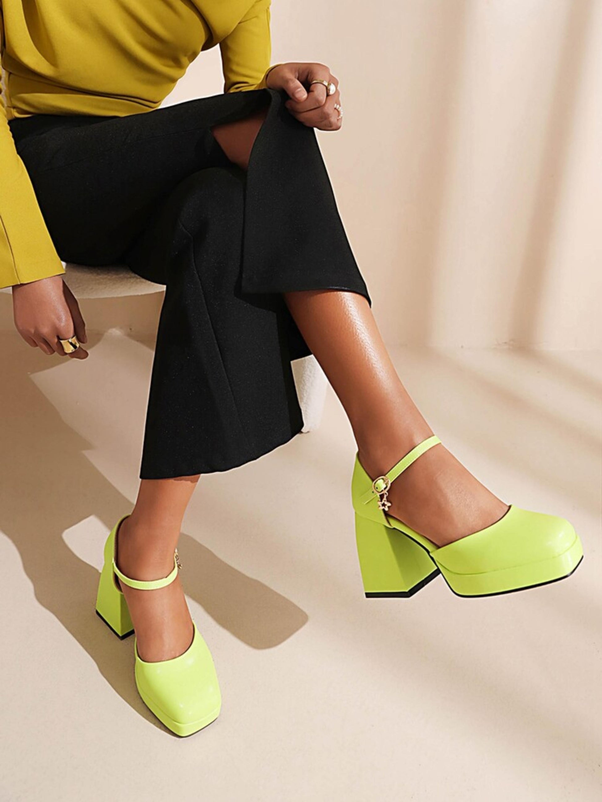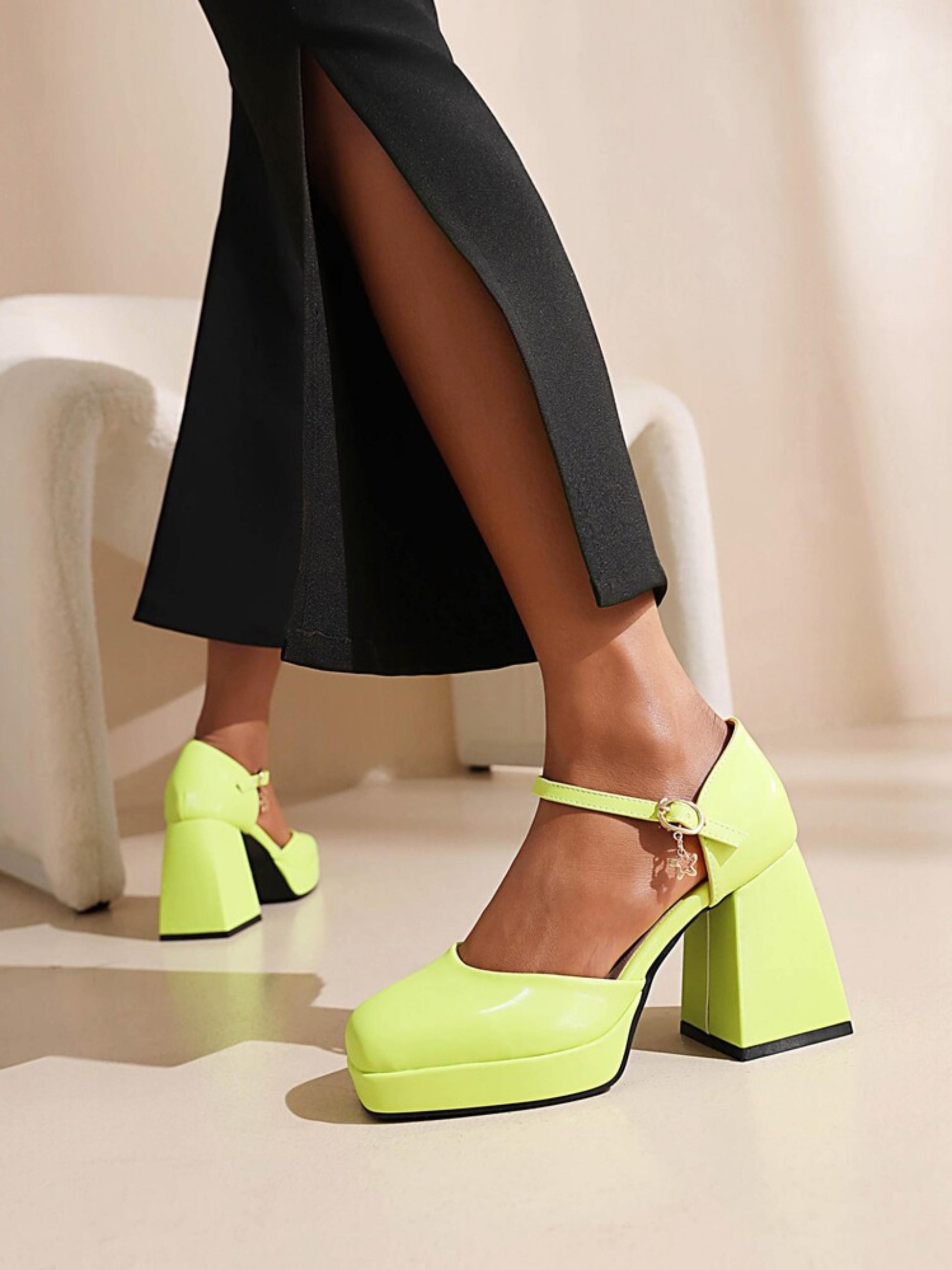 Fresh Lime Green Ankle Strap Platform Women Sandals