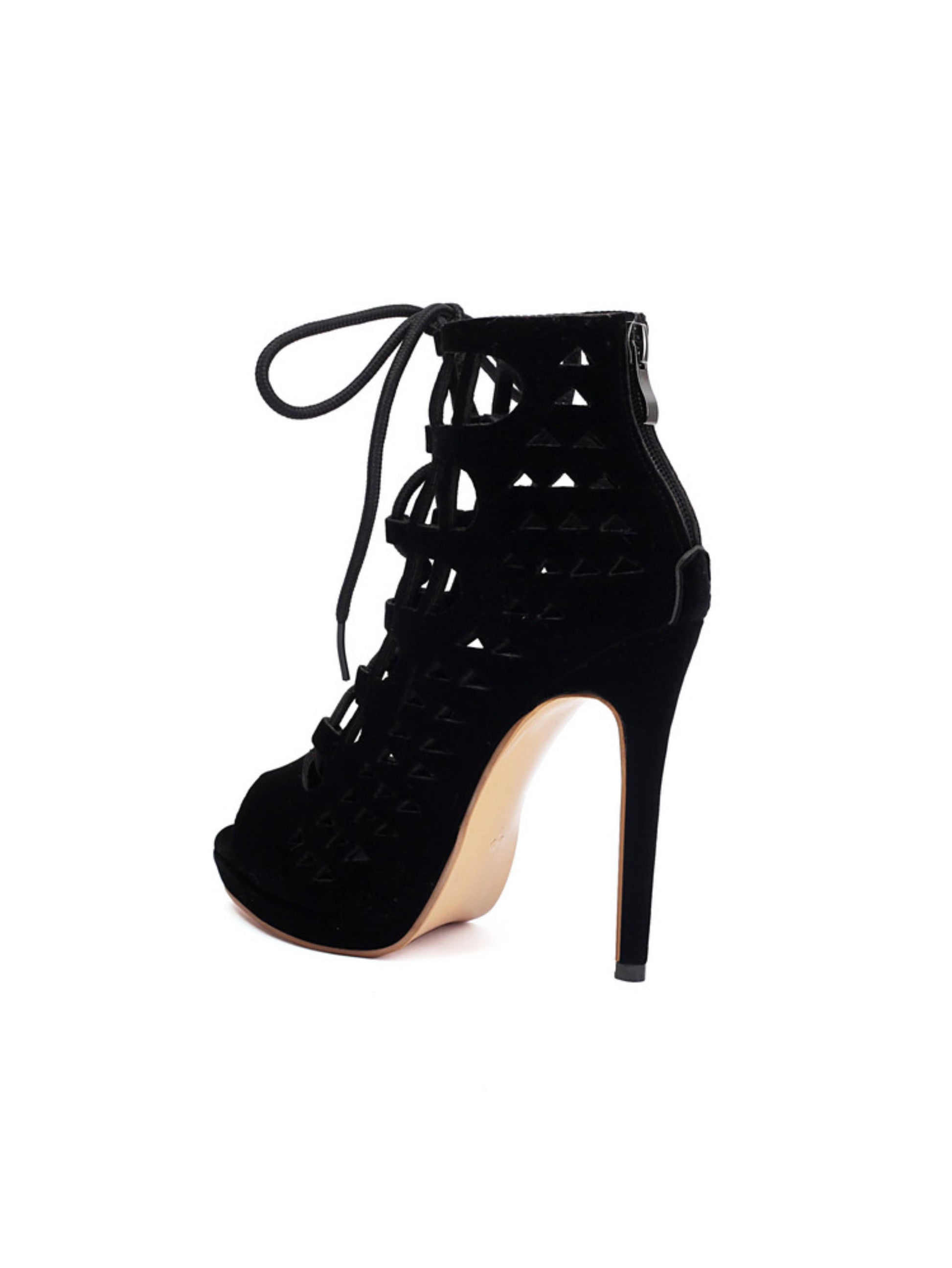 - Sandal Features: Front lace-up design with back zipper for easy wear, high-fashion silhouette, reveals a subtle glimpse of the toes, and mid-to-high ankle height