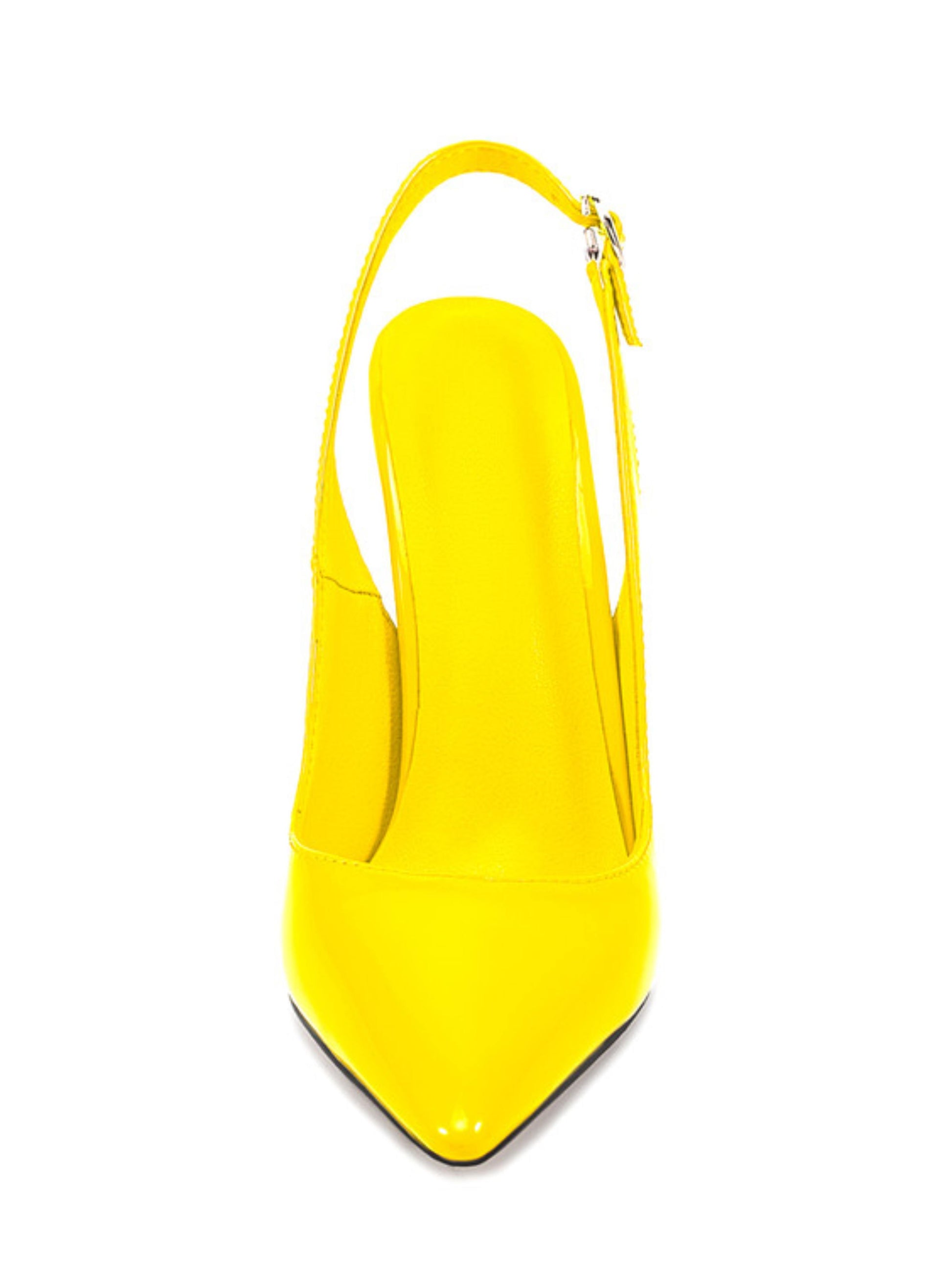 - Sandal Features: Yellow patent slingback stiletto, designed with a sharply pointed toe and sky-high heel, and adjustable slingback strap ensures a secure fit
