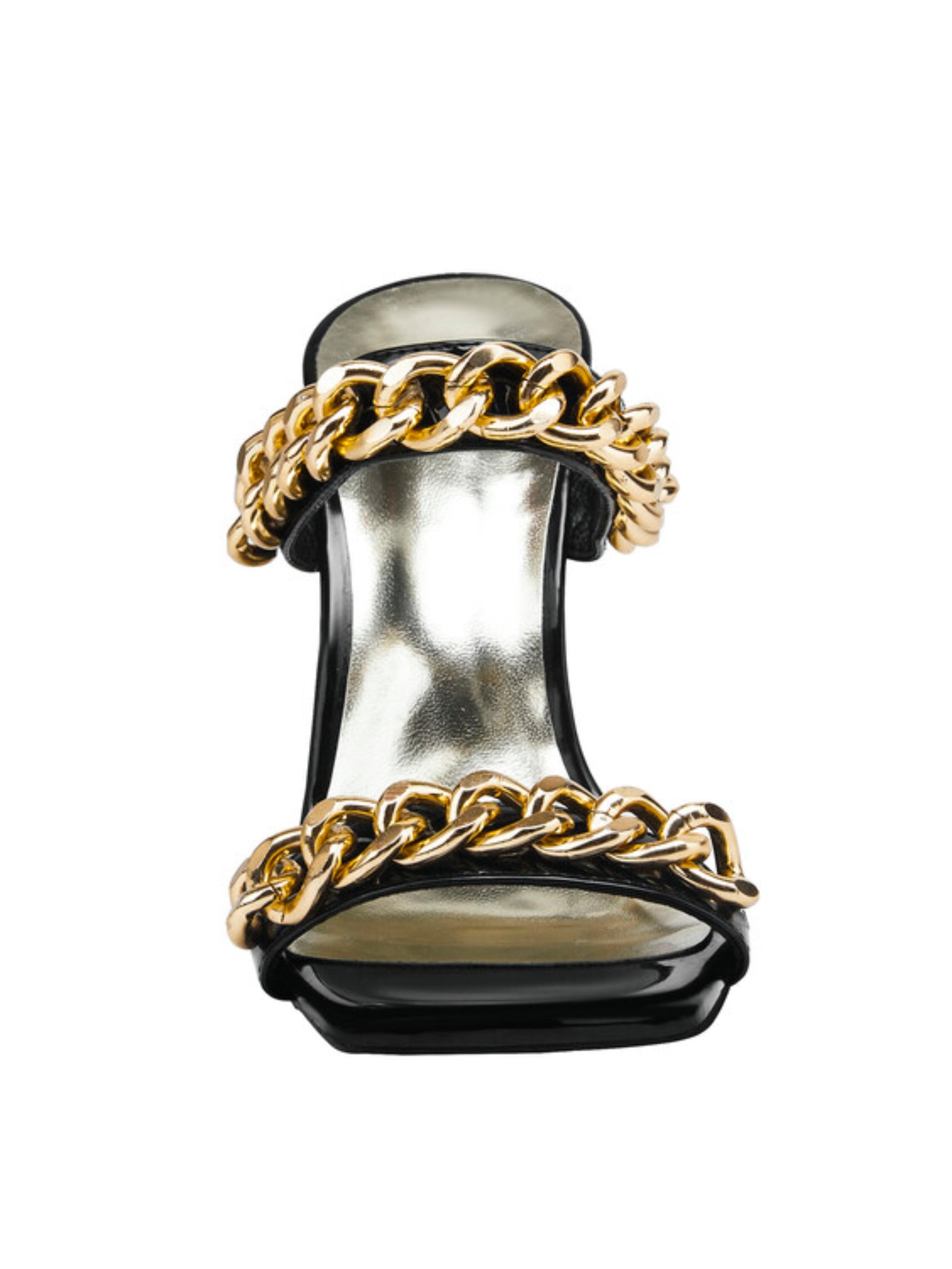 Golden Chain Sculpted Fang Heel Luxury Women‘s Sandals