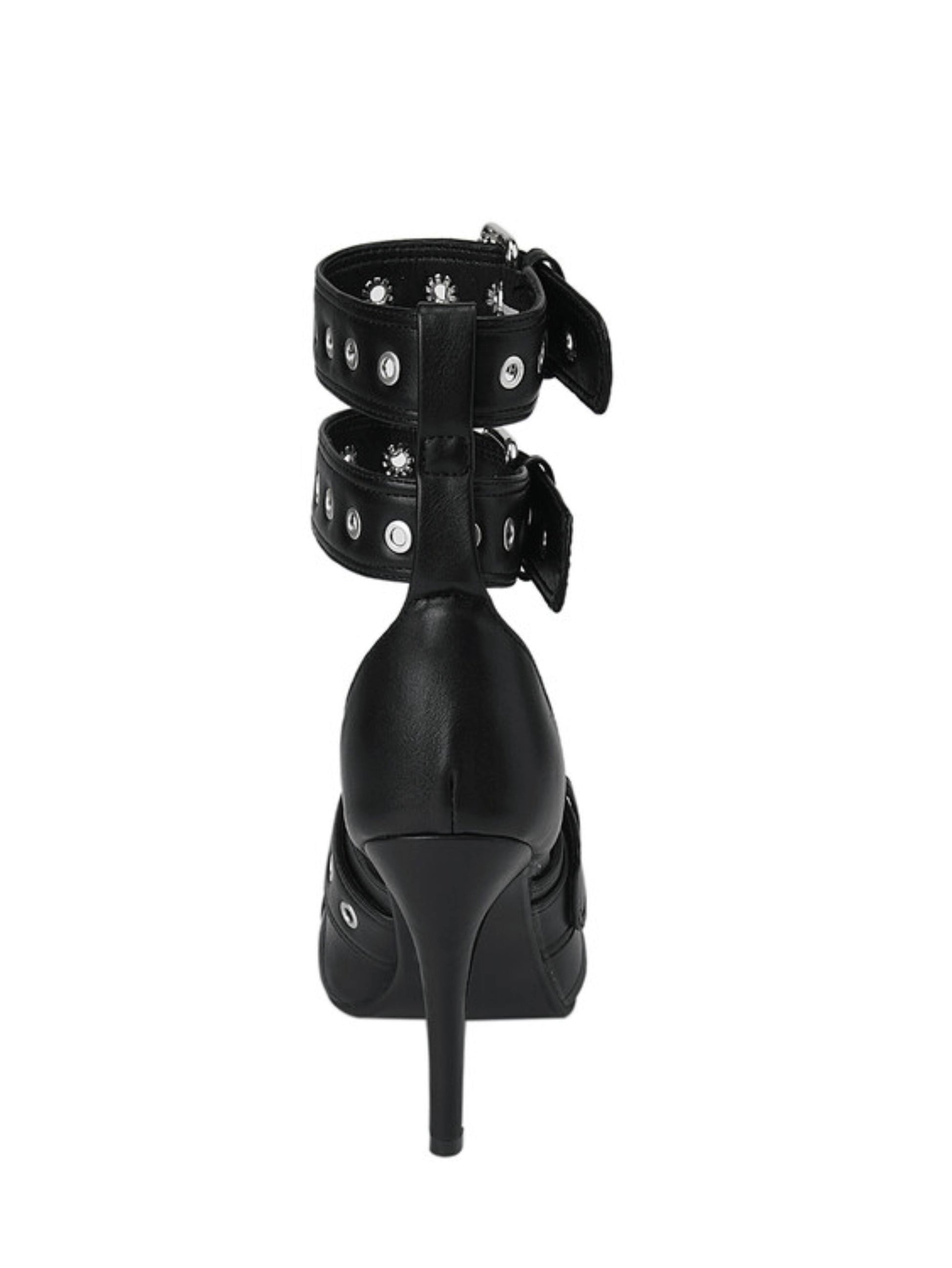 Gothic Charm Double Buckle Stiletto Black Sandals for Women