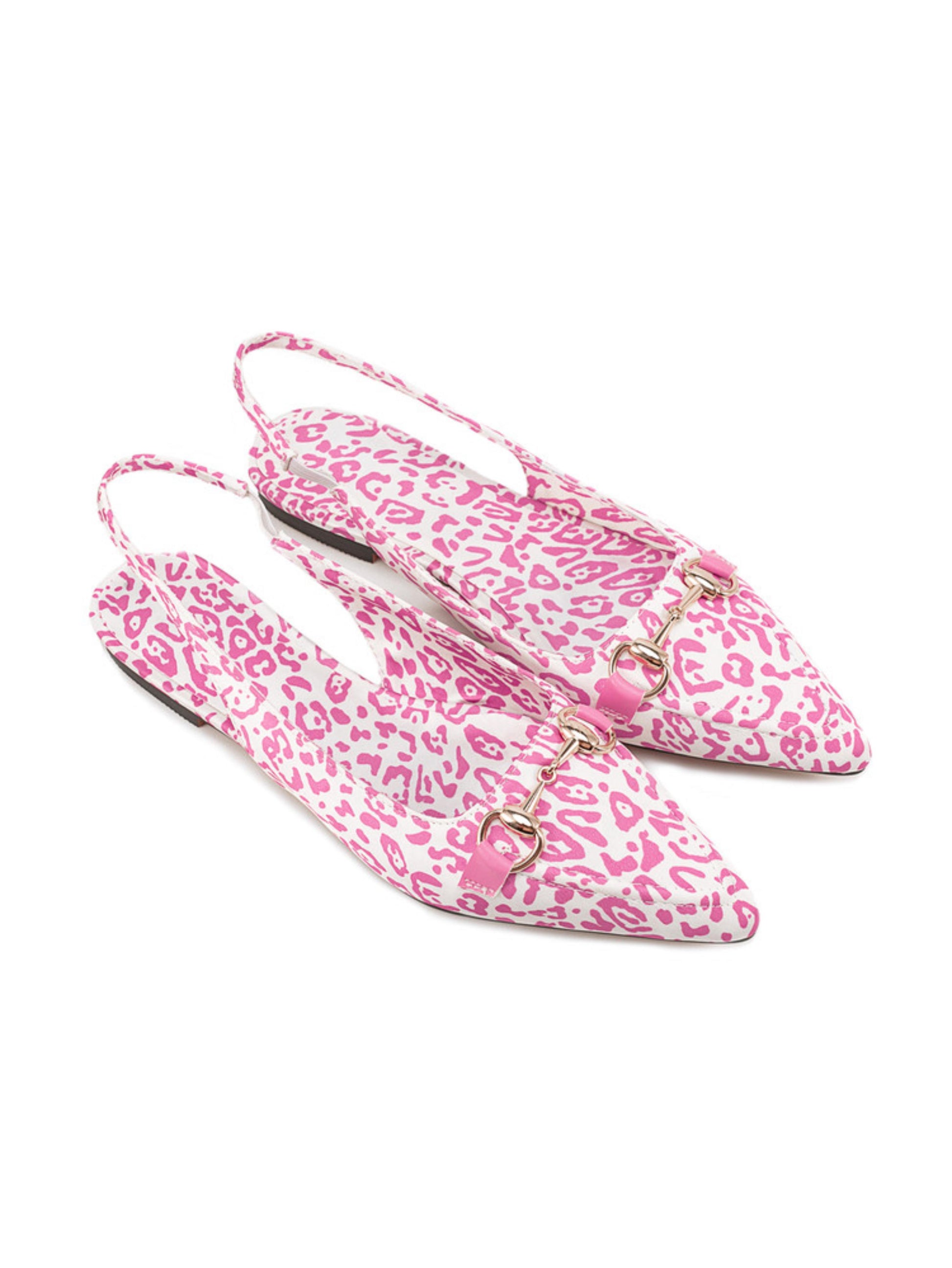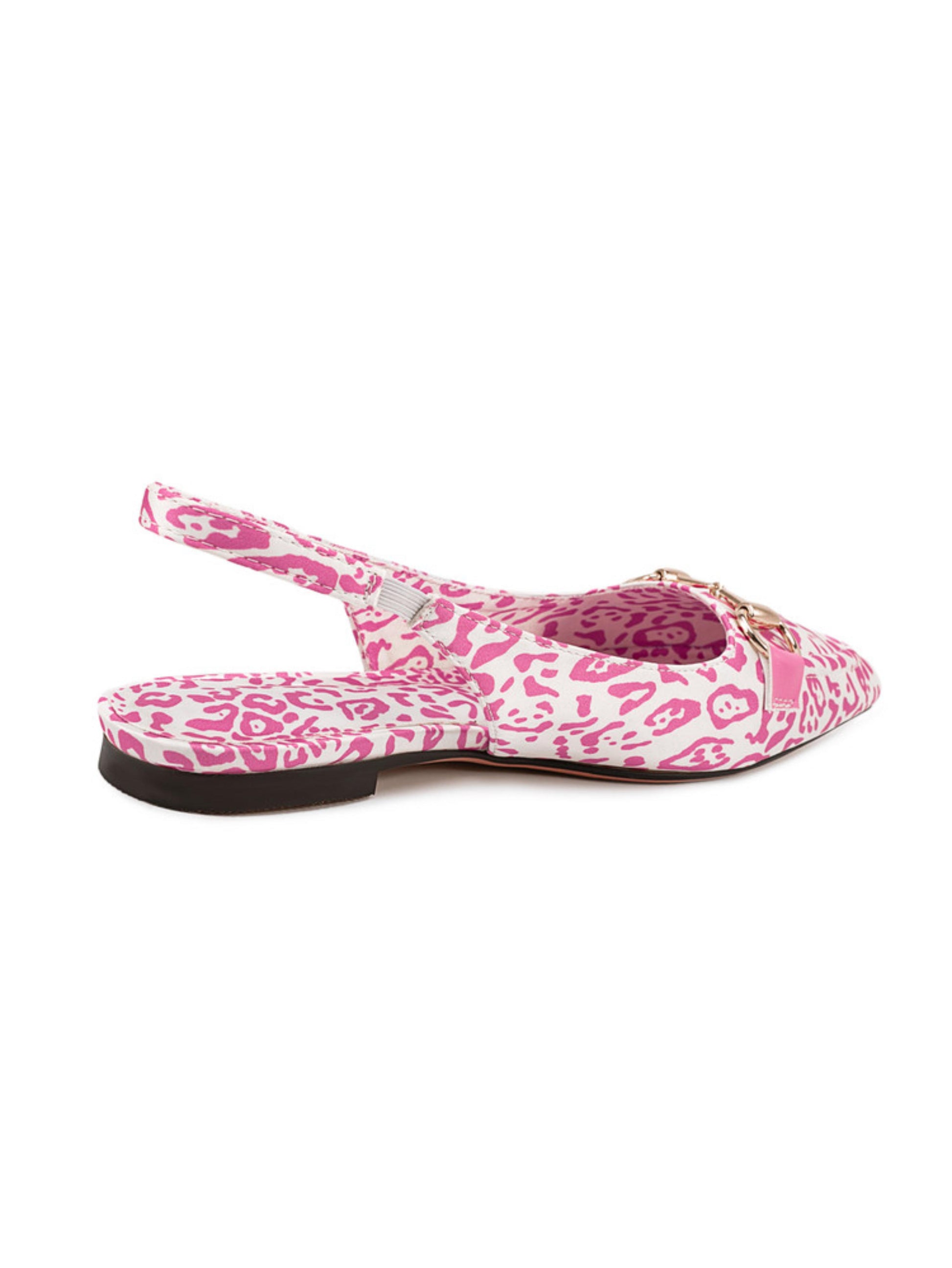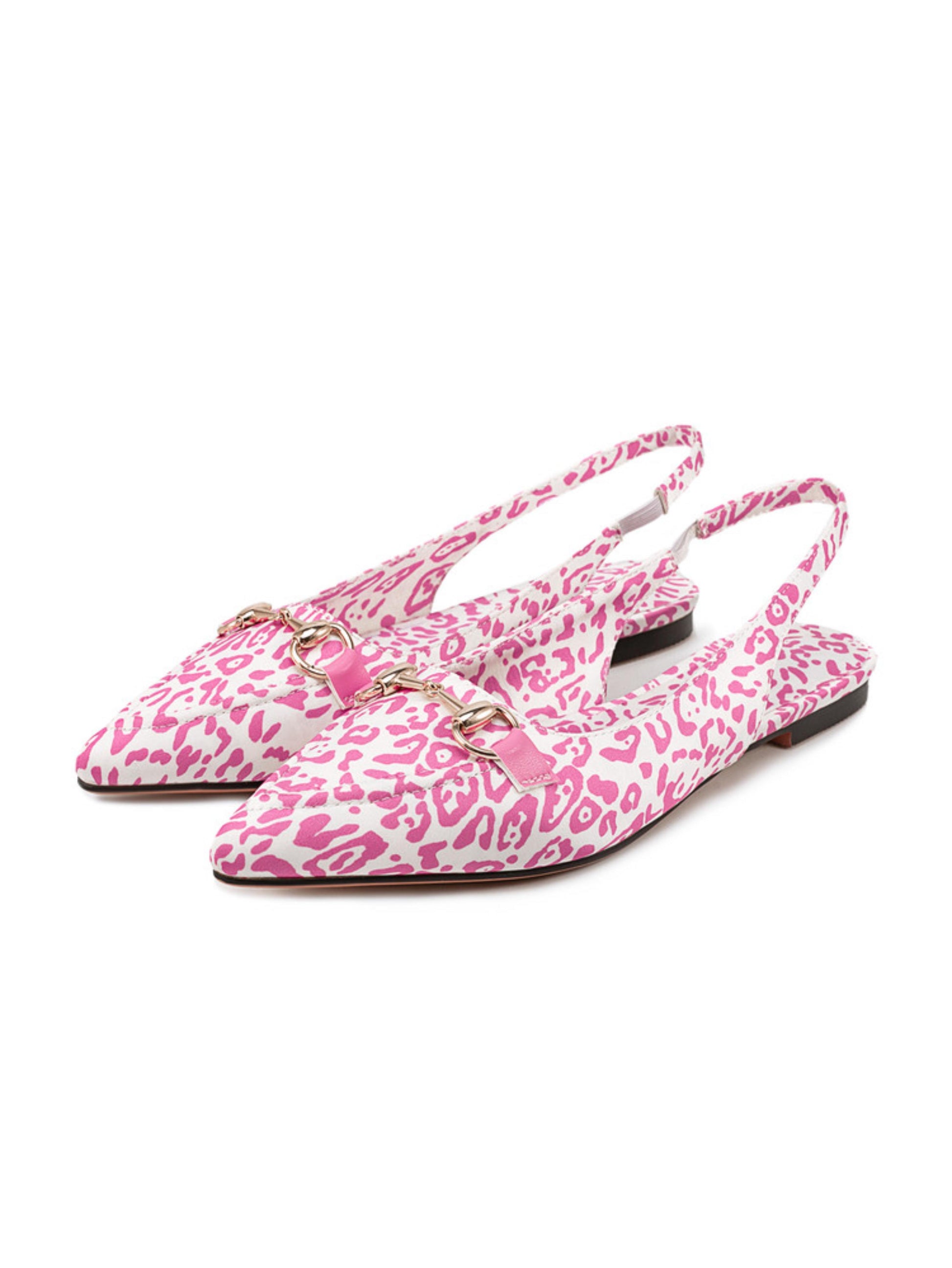 - Sandal Features: Pink leopard print, sleek pointed toe, and elastic slingback strap for easy slip-on comfort