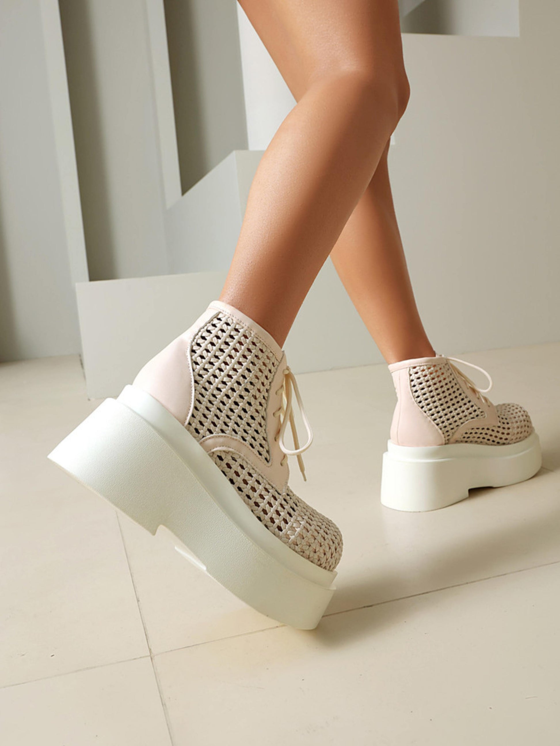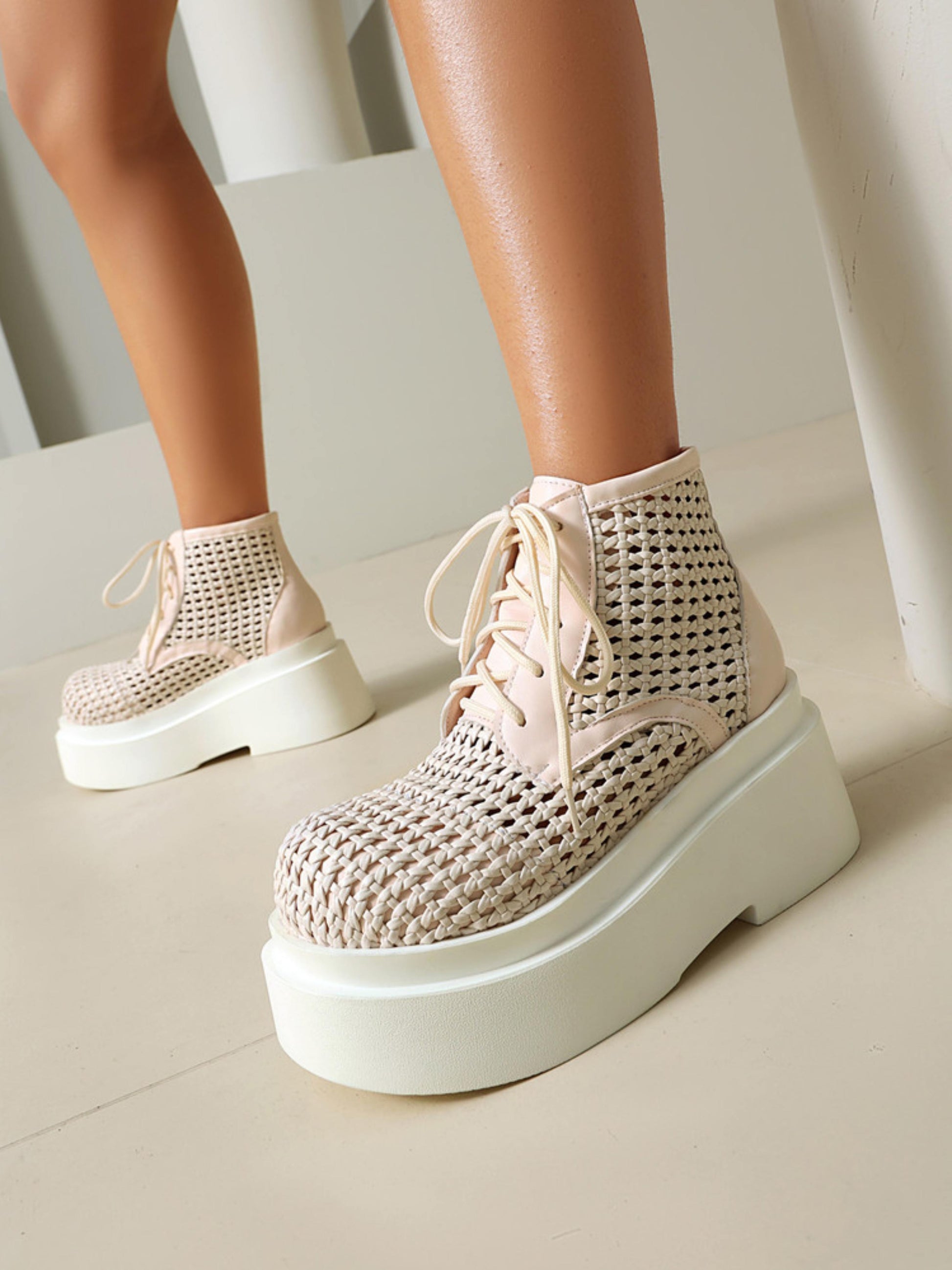 - Sandal Features: Cushioned insole for added comfort, woven design, front lace-up, and breathable Summer Boot