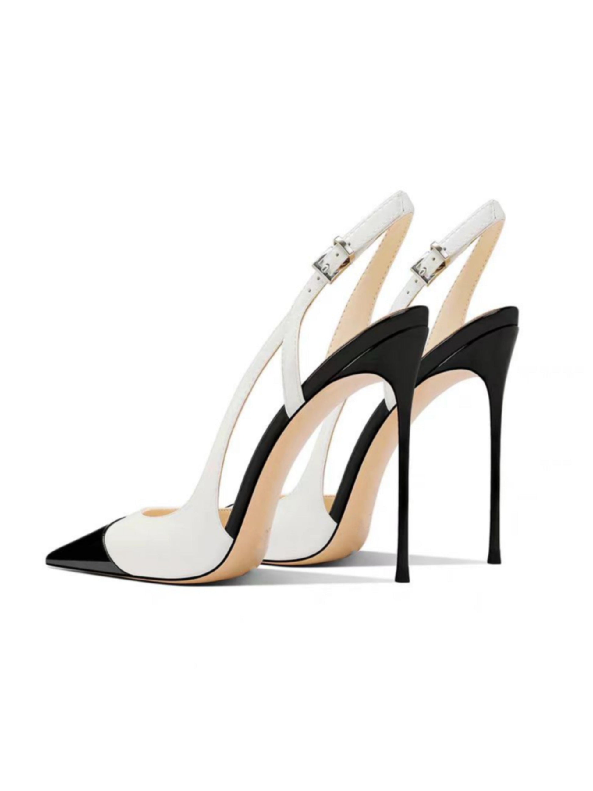 - Sandal Features: Elegant ankle strap, adjustable slingback strap with buckle, slim stiletto heel, and pointed-toe design