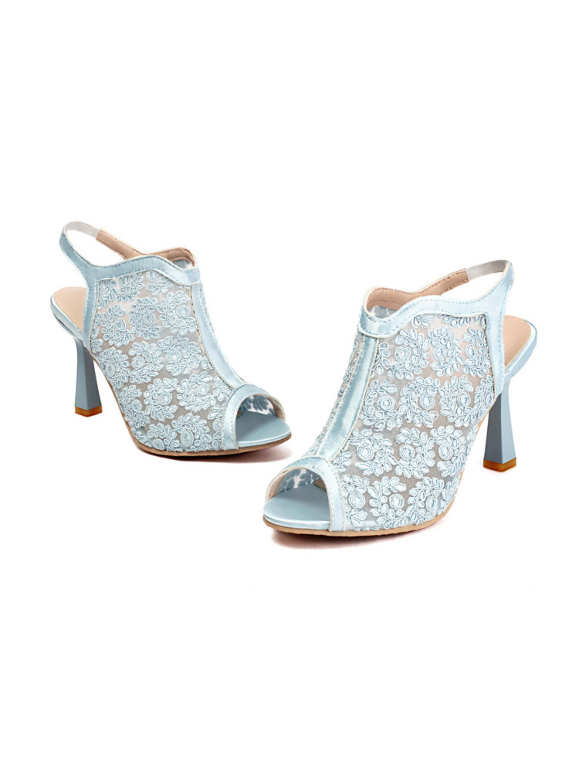 - Sandal Features: Floral embroidery, elegant peep-toe slingback heels, and high flared heel