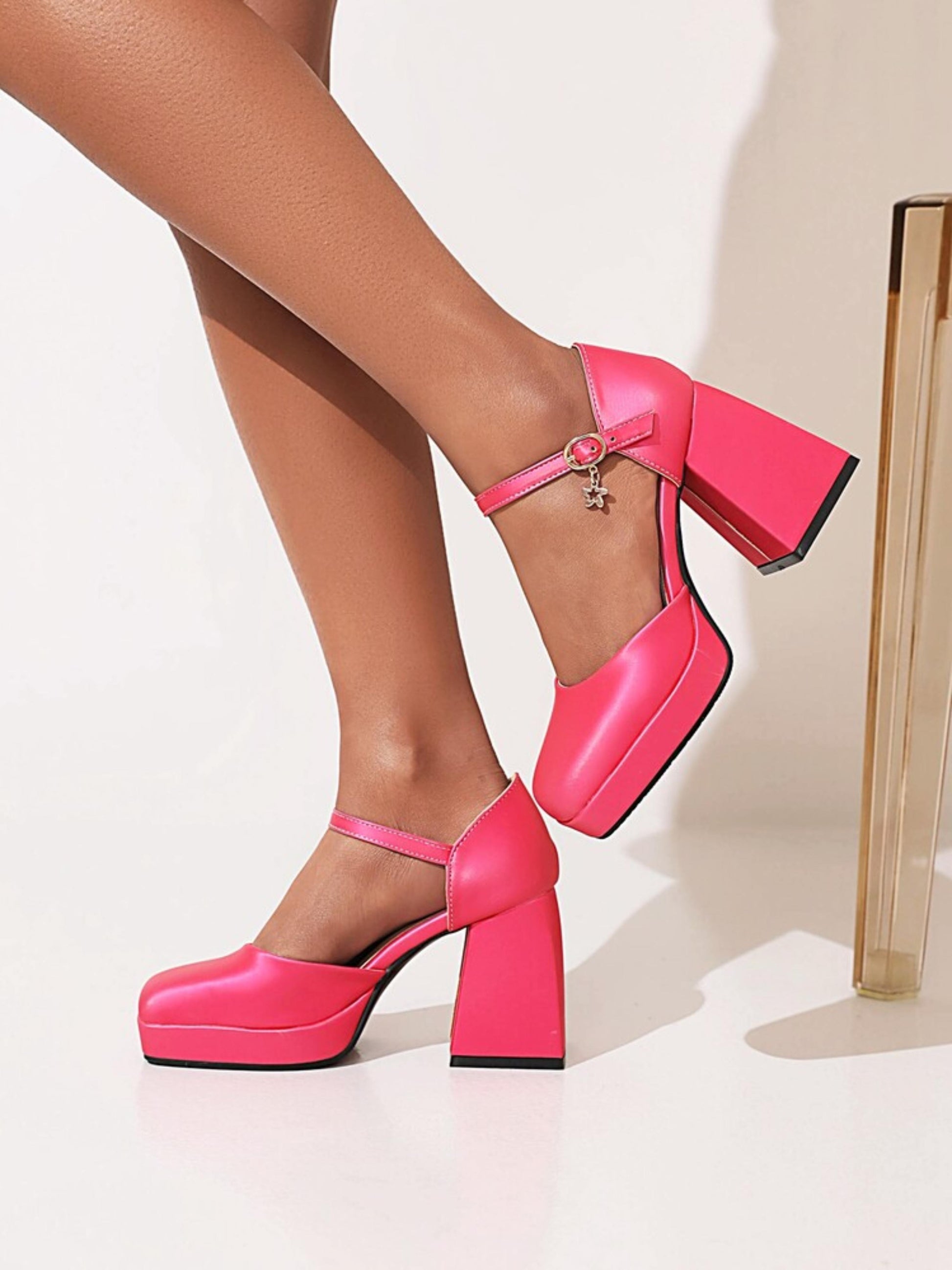 Pink Block Heel Ankle Strap Heels Woman Sandals