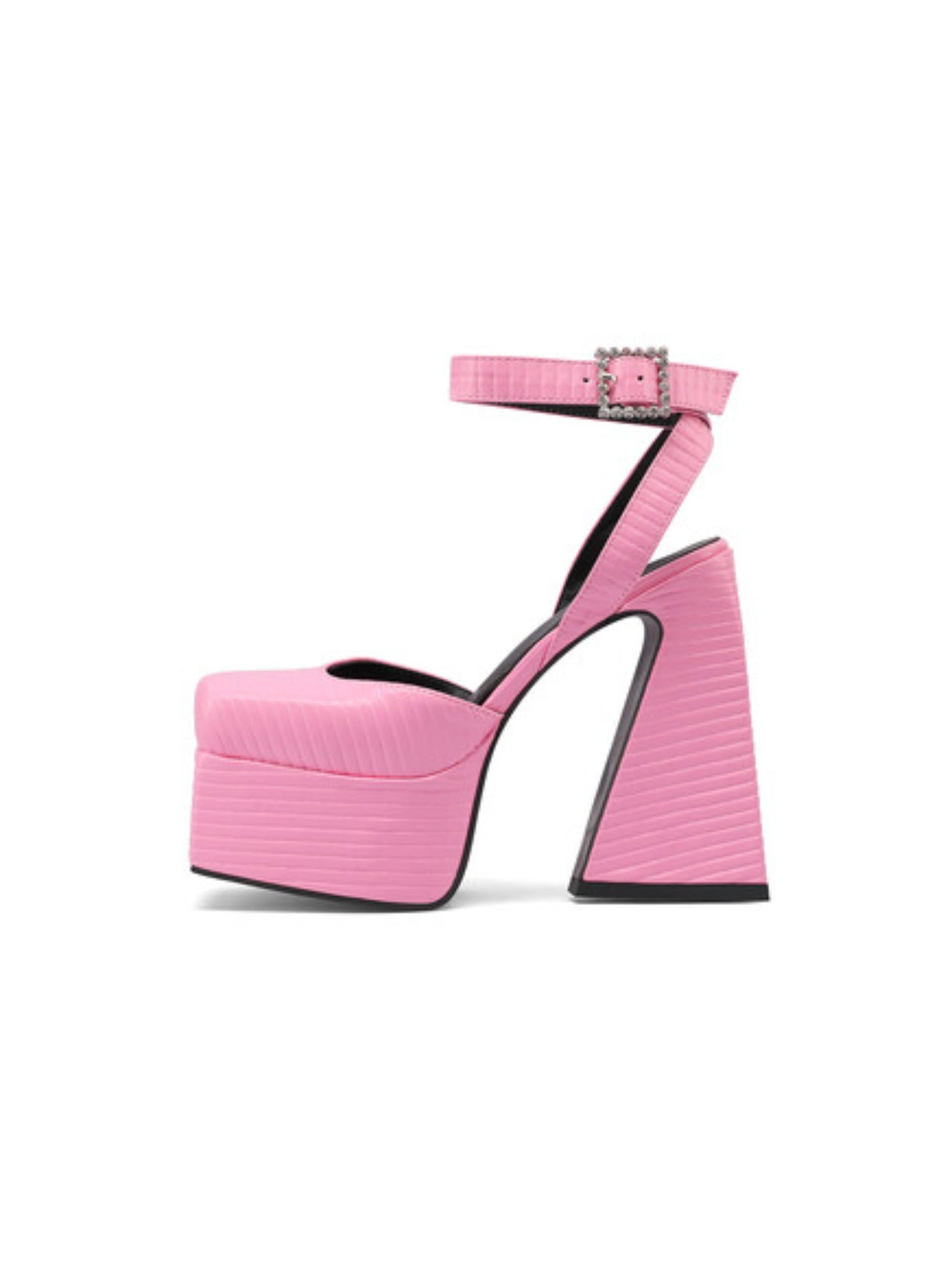 Pink Textured Platform Chunky Heeled Sandals for Women