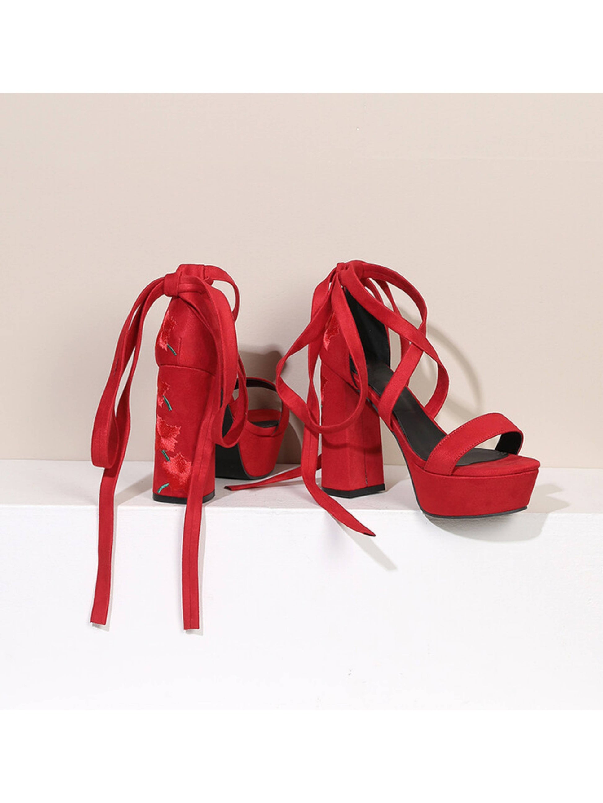 Red Hot Wrap-Around Platform High Heel Sandals for Women
