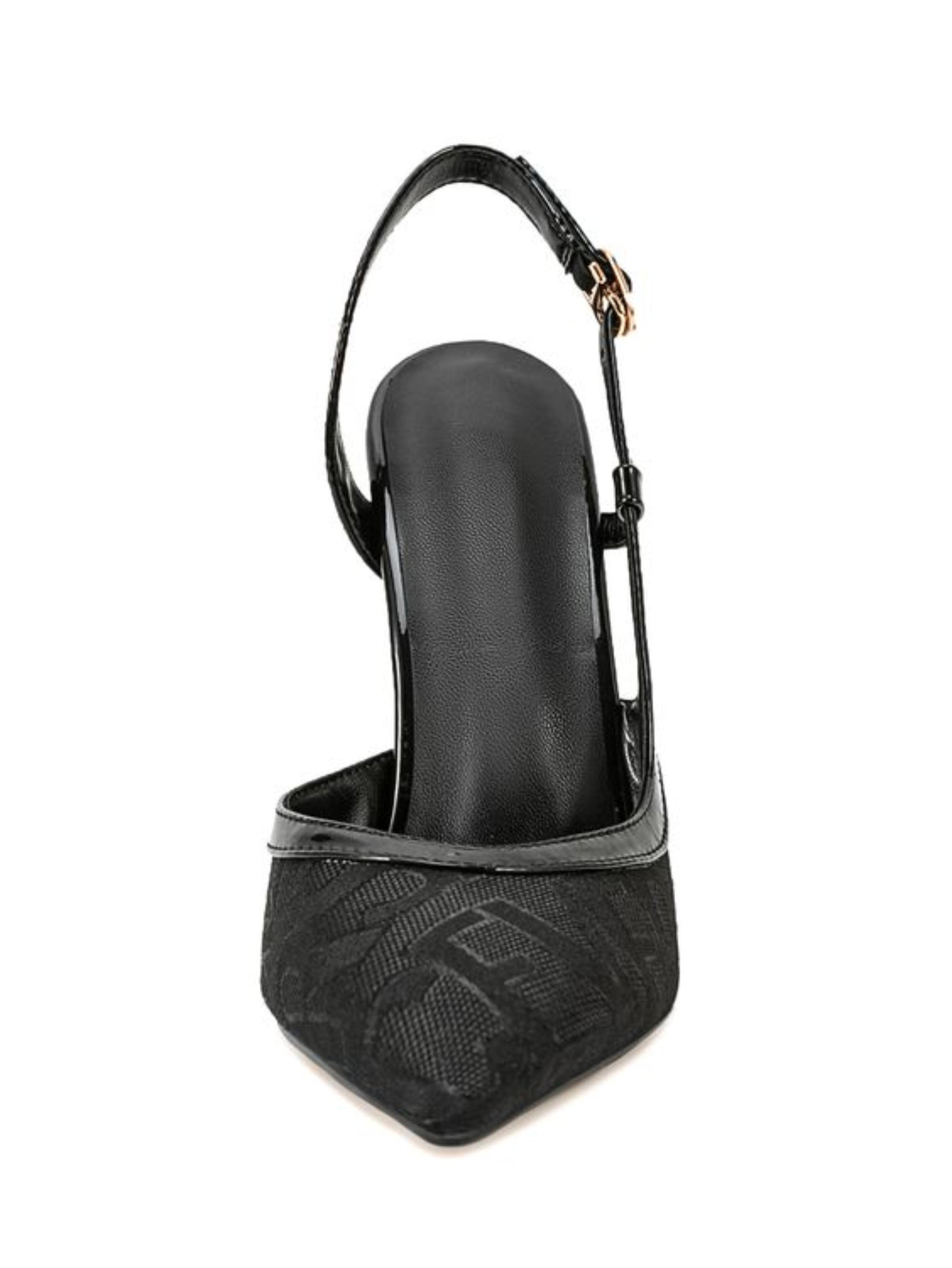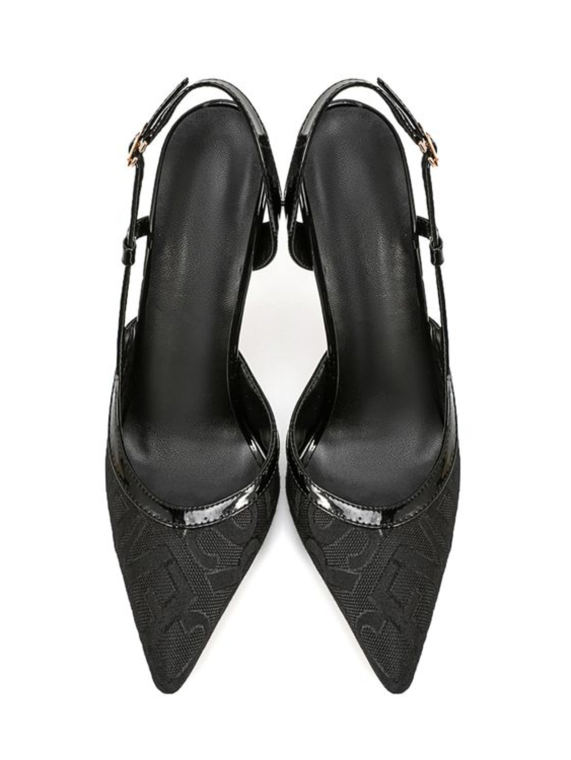 - Sandal Features: Elegant black fabric, slingback design for added support, and sleek pointed toe