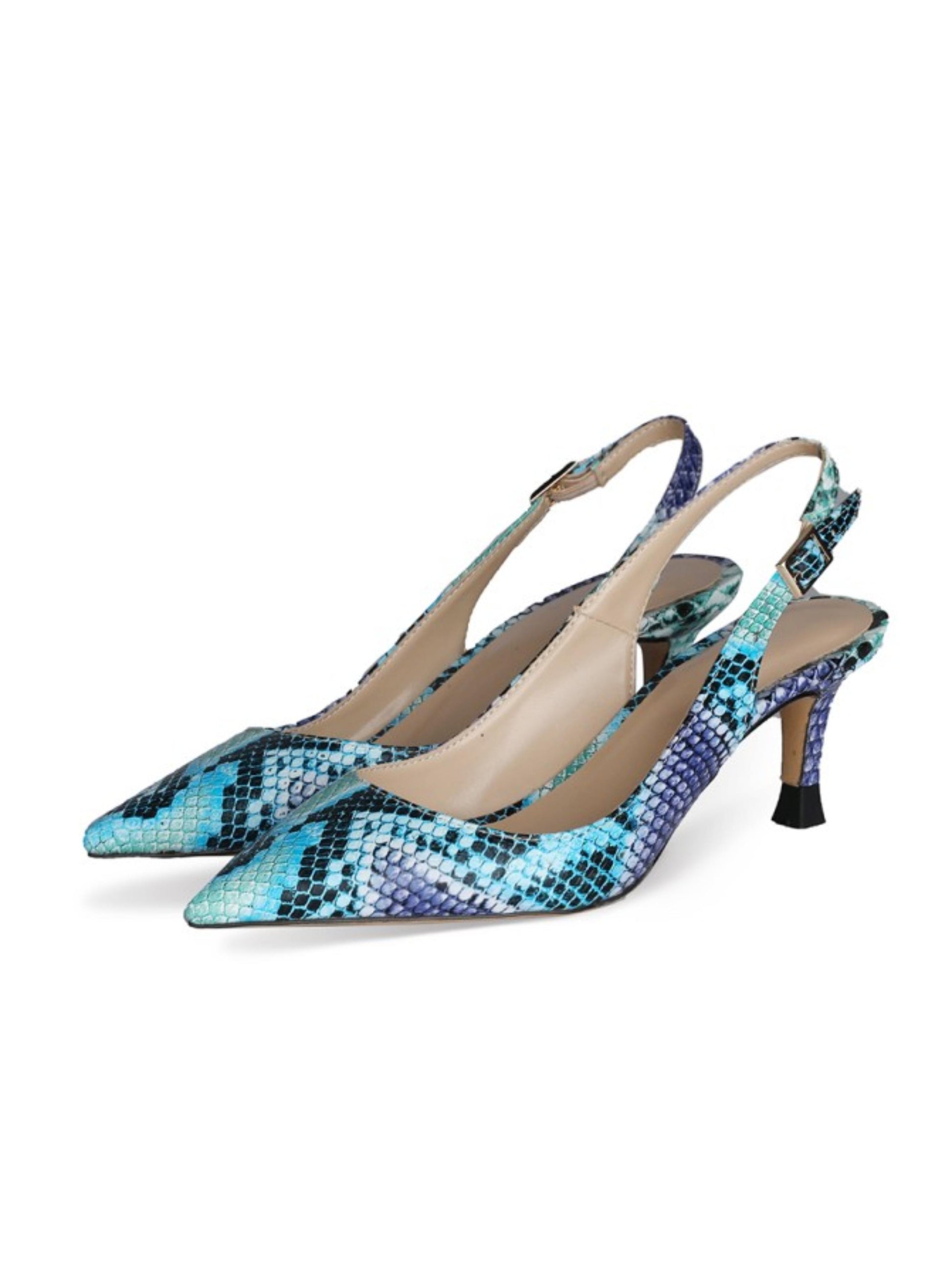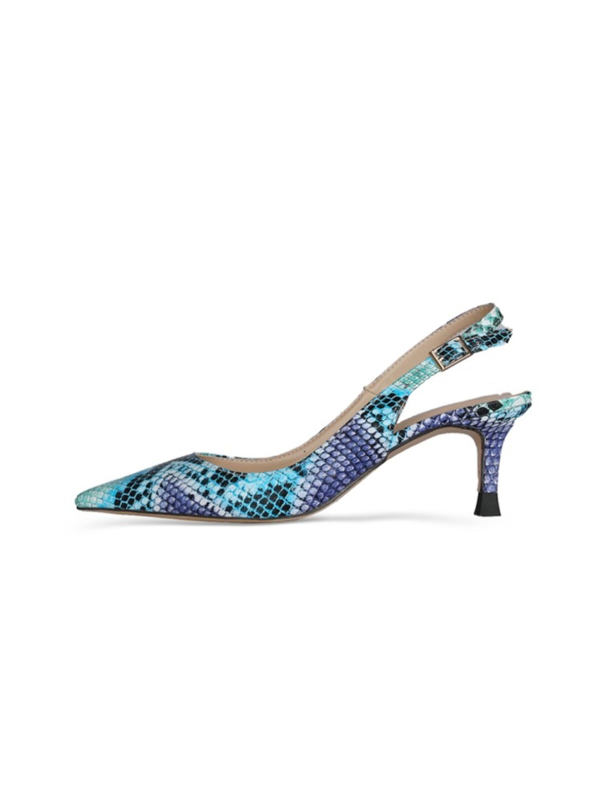 Snakeskin Pattern Slingback Pumps Blue Sandals for Women