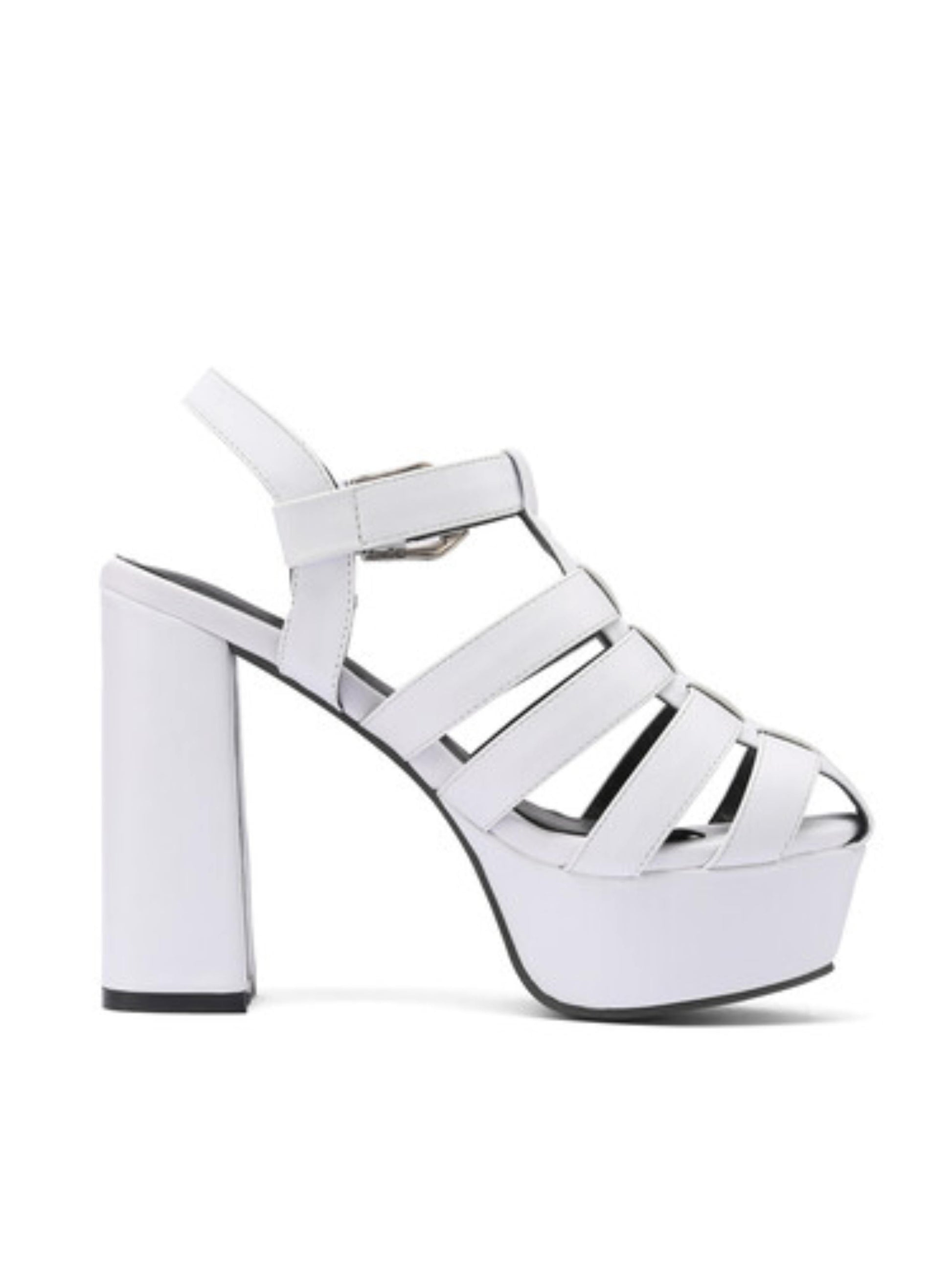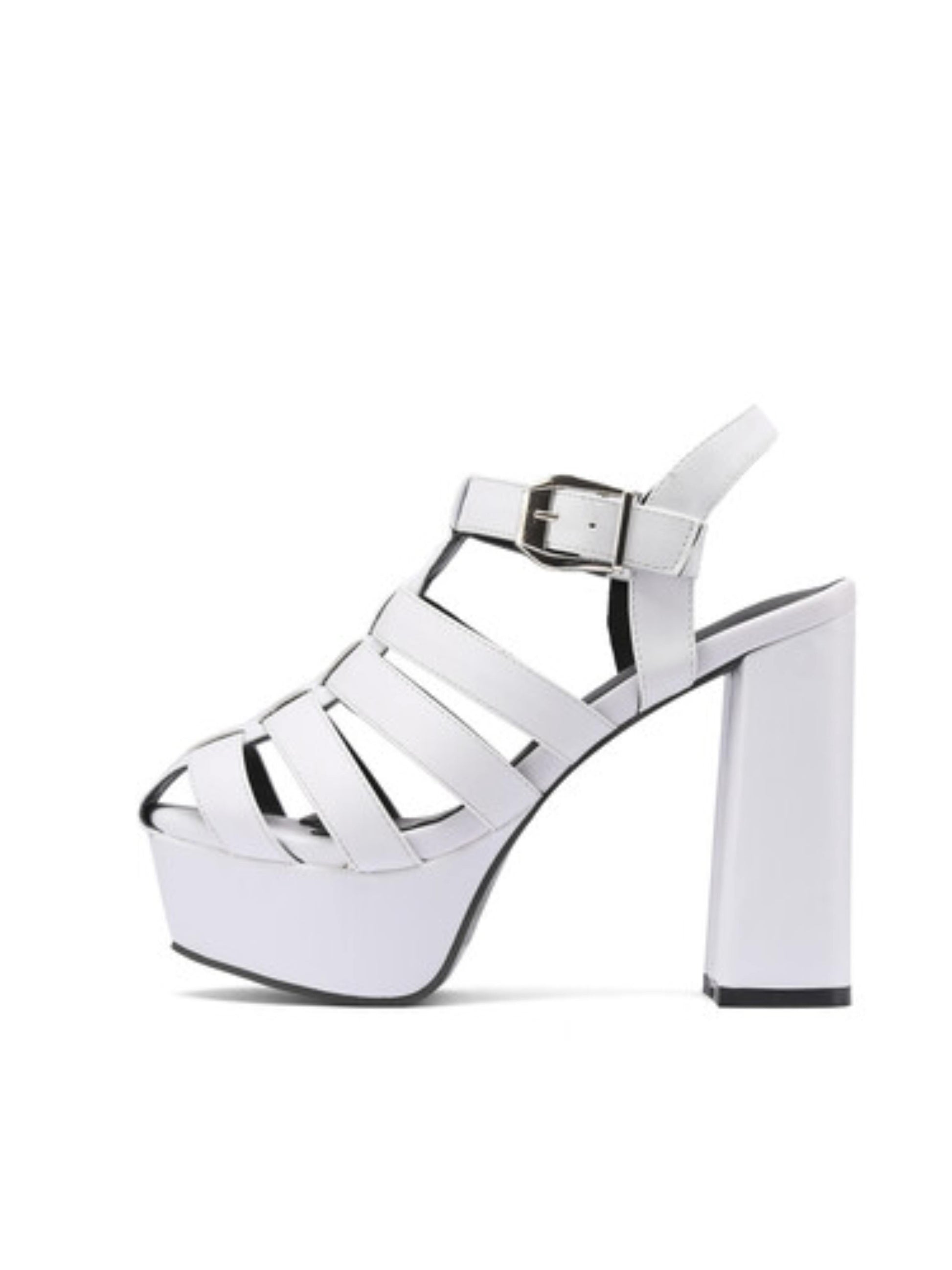 - Sandal Features: Multi-strap cage design, sturdy platform sole for comfort, and high block heel for stability