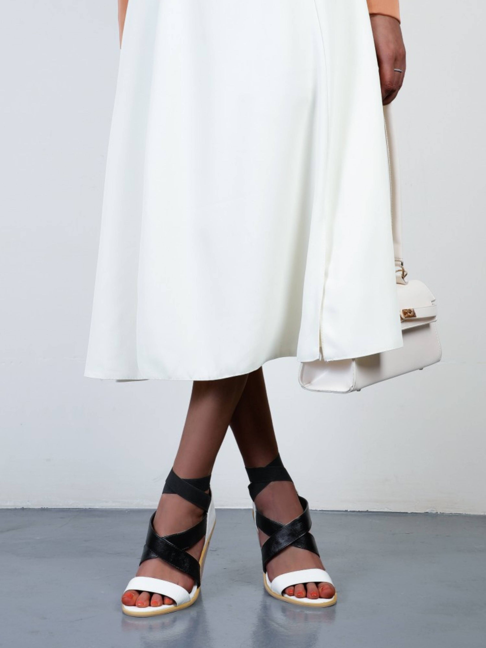 - Sandal Features: Modern colorblock design, elastic crisscross straps for secure fit, and wedge heel for added comfort and stability