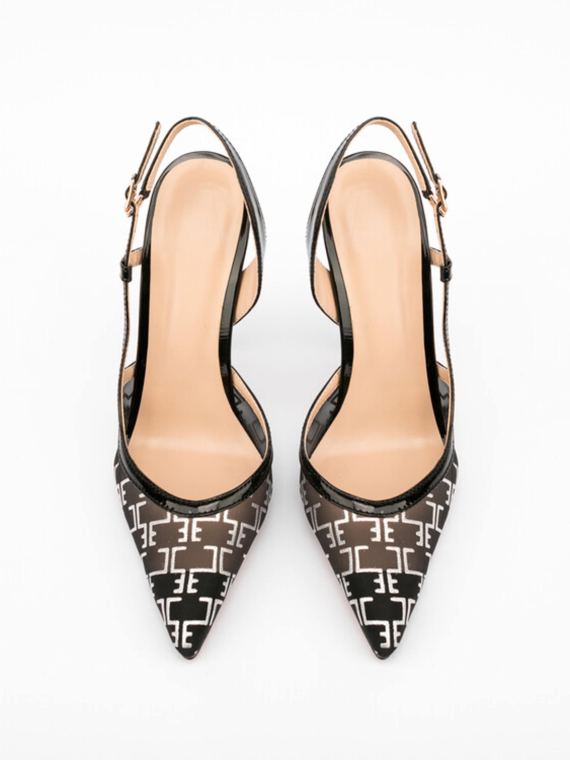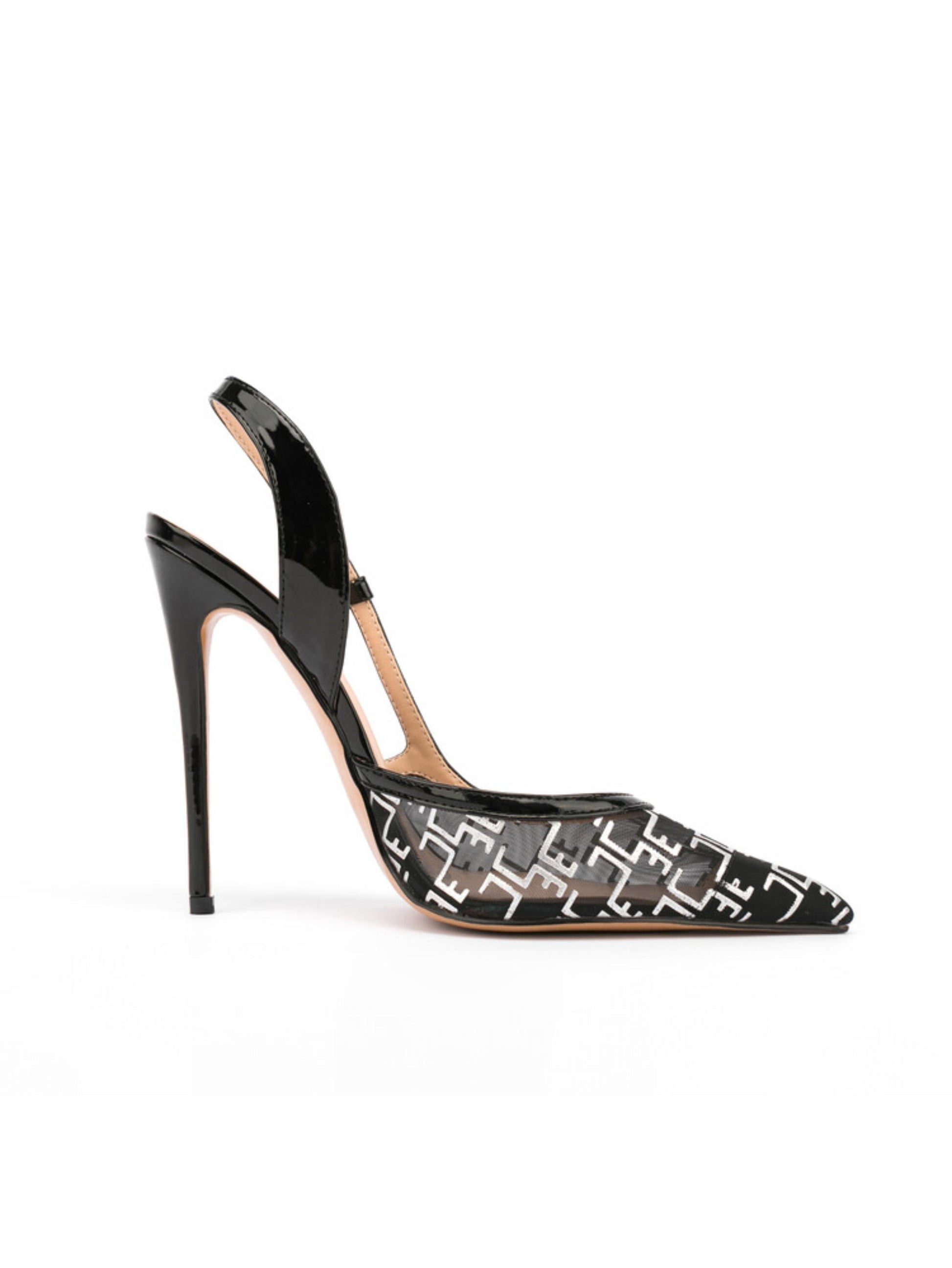 - Sandal Features: Transparent upper with bold white geometric print, pointed toe elongates the silhouette for a sharp, ultra-high stiletto heel, and slingback strap with buckle closure for a secure