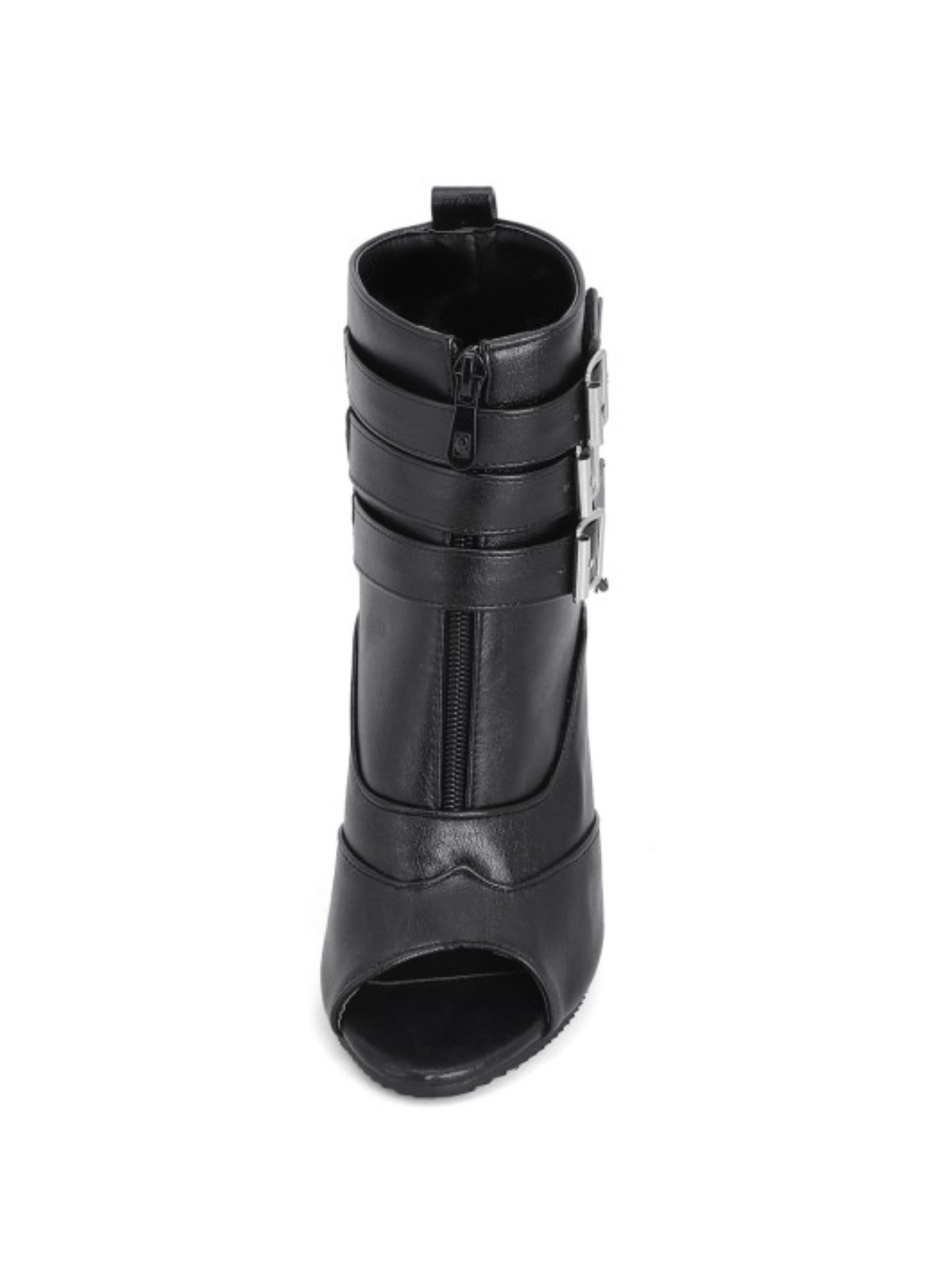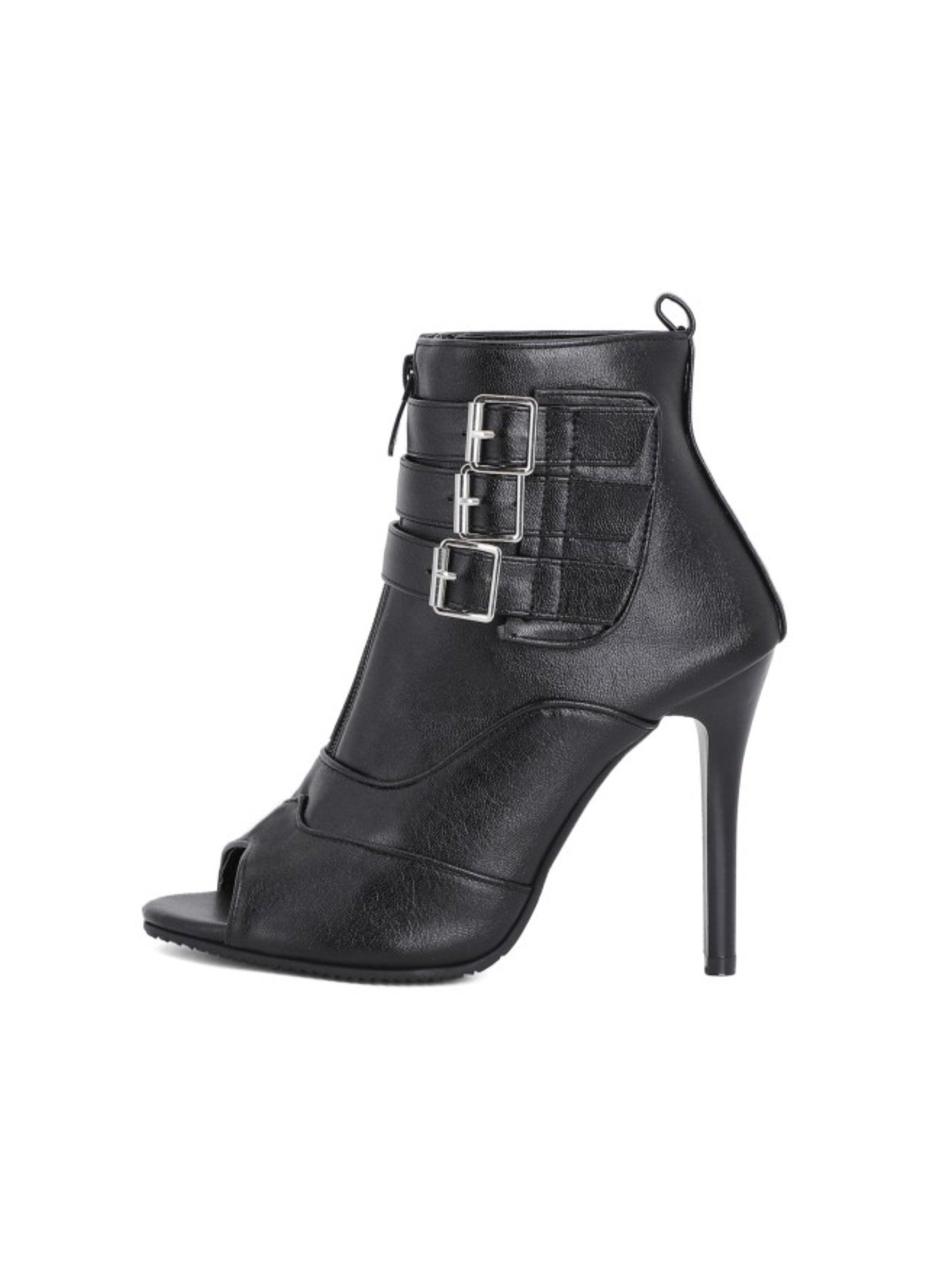 - Sandal Features: Fashion-forward peep-toe design, triple adjustable straps with metal buckles, front zipper closure for both style and ease of wear, and high stiletto heel for an elongating effect