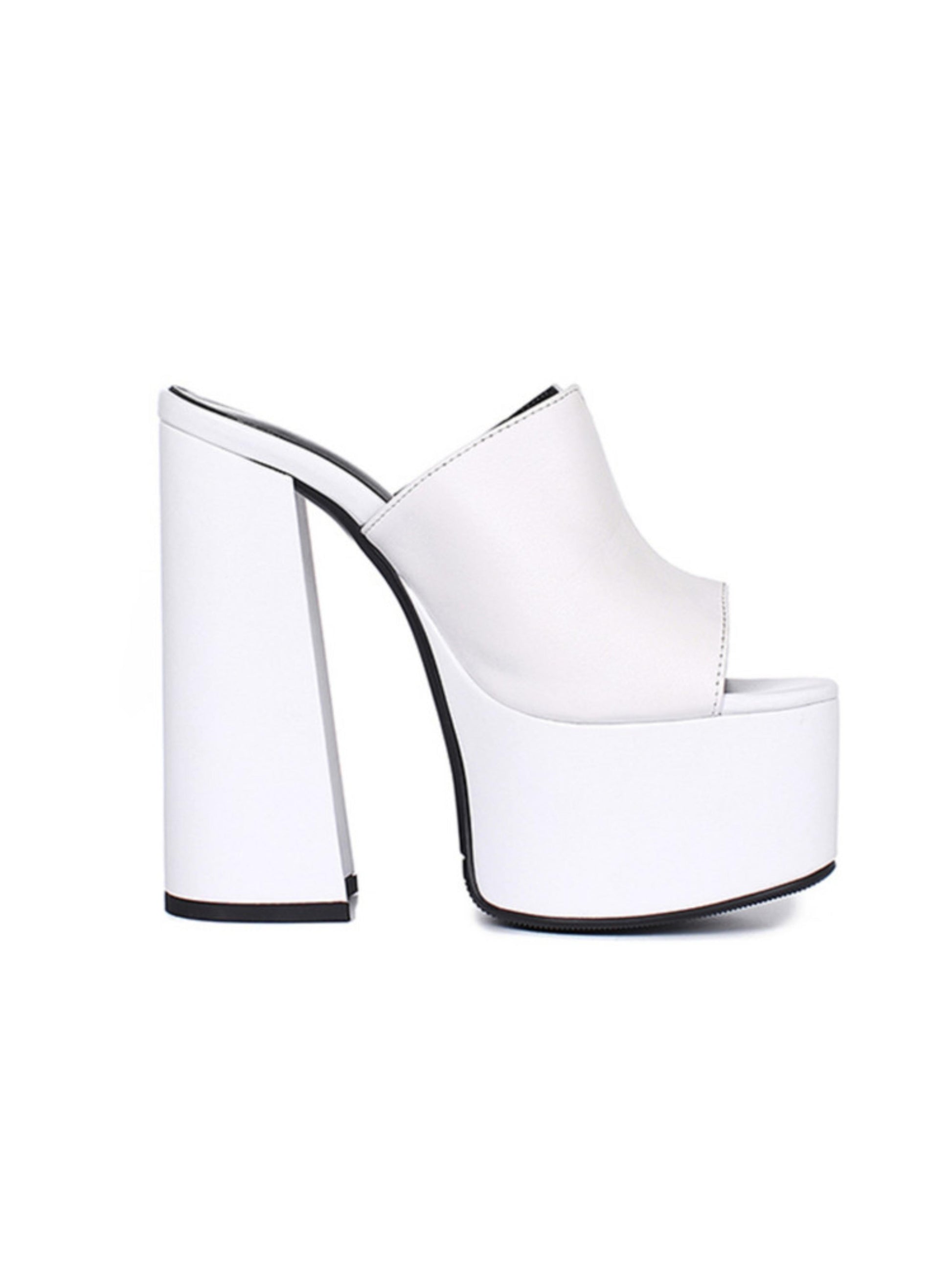 - Sandal Features: Bold platform sole for extra height and impact, comfortable slip-on design, and smooth faux leather upper